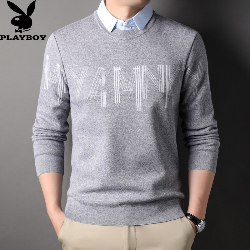 📚 花花公子假两件毛衣男套头宽松条纹针织衫秋冬款内外搭羊毛打底衫