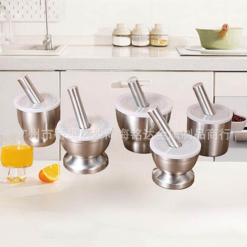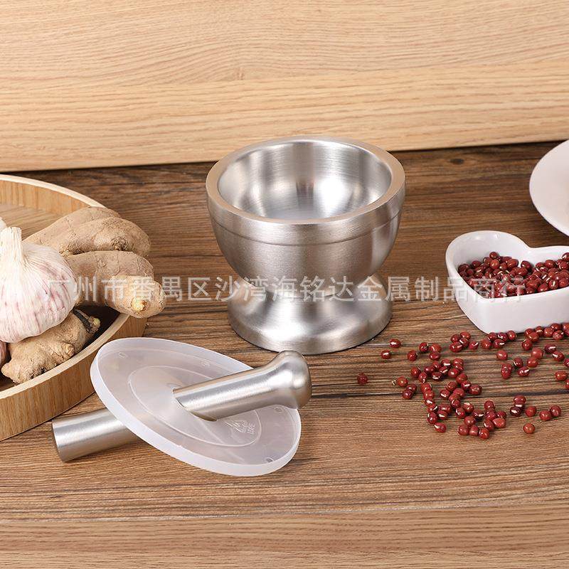 📚 加厚双层304不锈钢捣碎器家用捣药罐蒜泥器石臼研磨器懒人