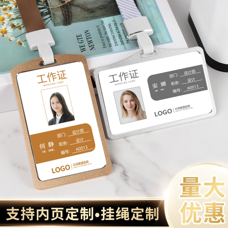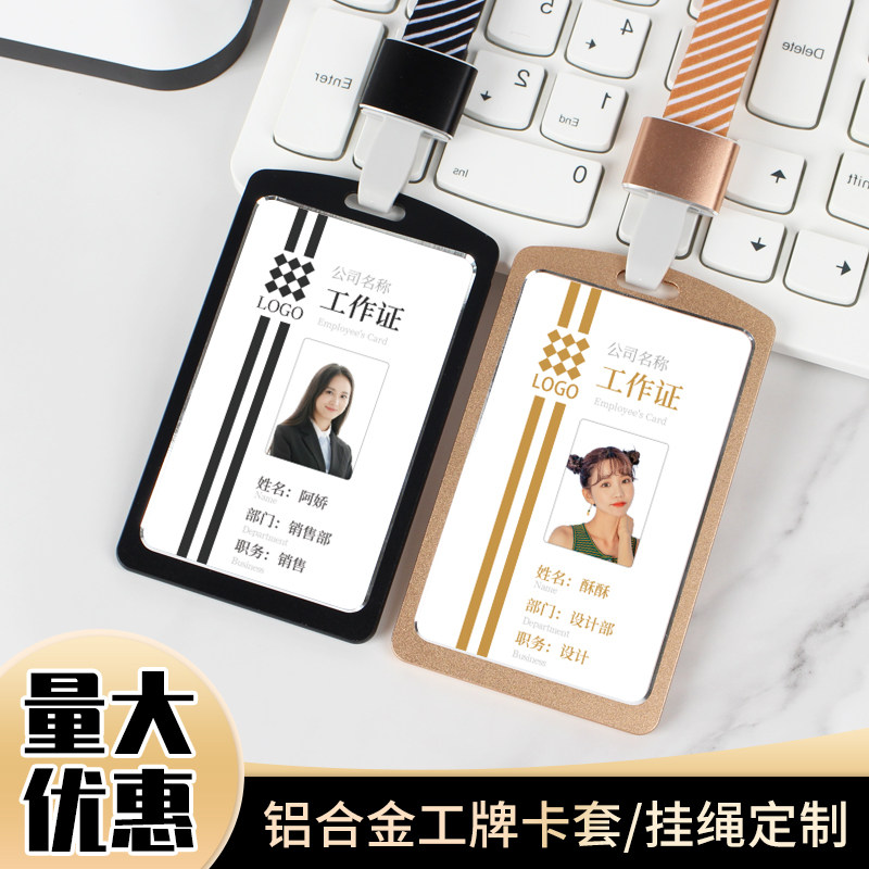 📚 文久029定制铝合金工作证卡套带挂绳工牌厂牌公司胸牌员工挂牌胸卡证件套工卡工号牌吊牌壳设计高档金属卡