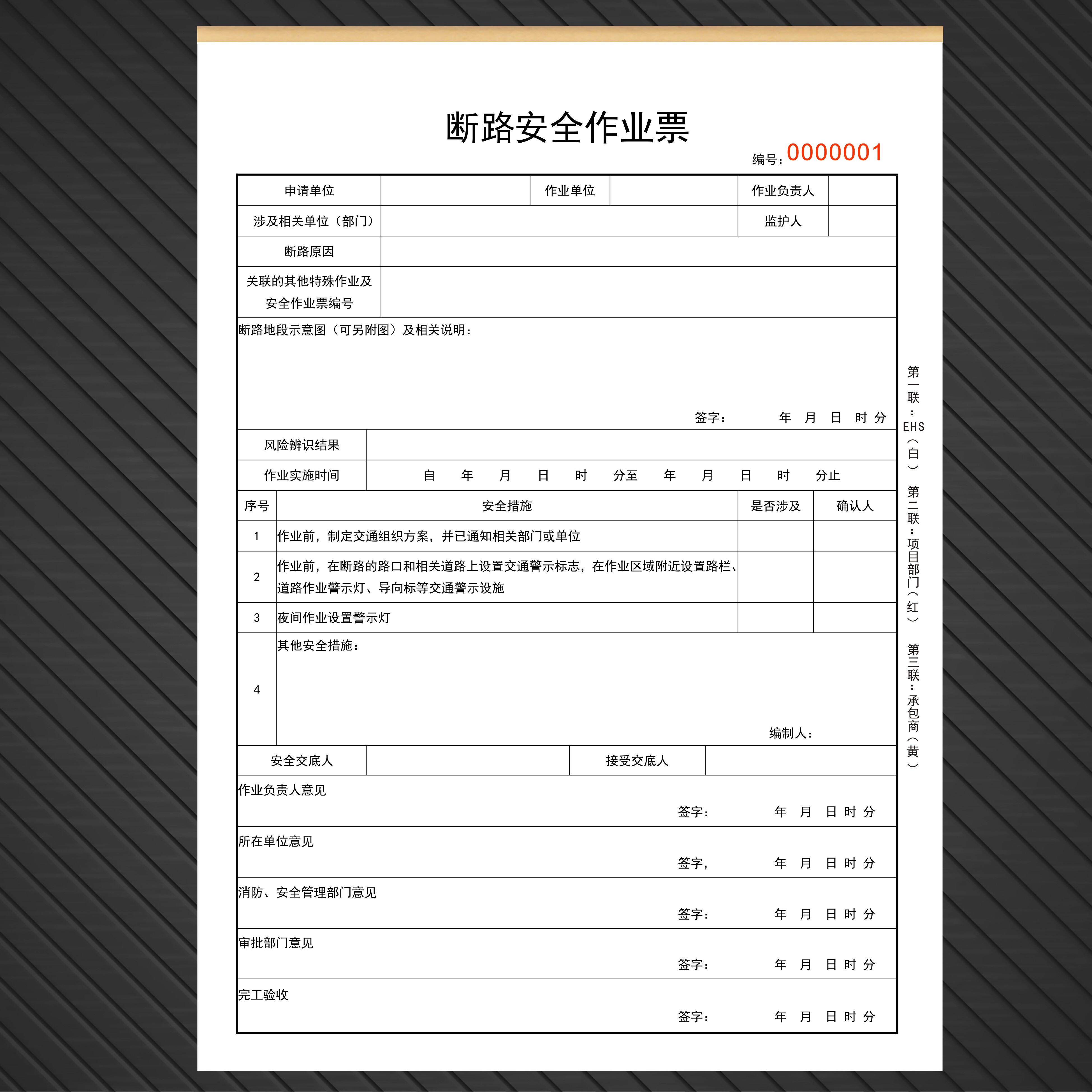 📚 定制断路安全作业票道路作业消防设施特殊化工建筑公路审批表单据