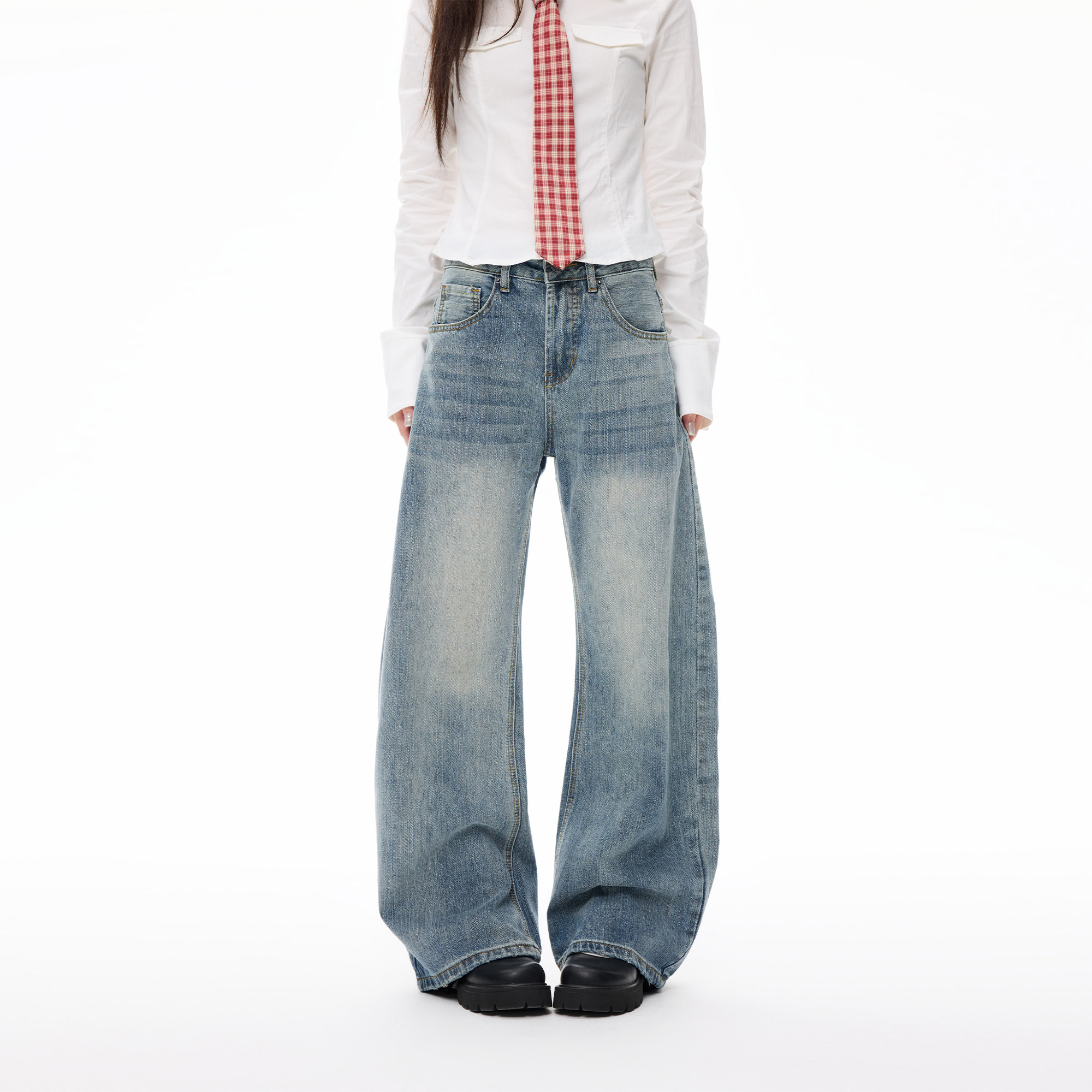 📚 COLDSTONE复古水洗蓝小弯刀阔腿牛仔裤女美式做旧宽松百搭垂感裤