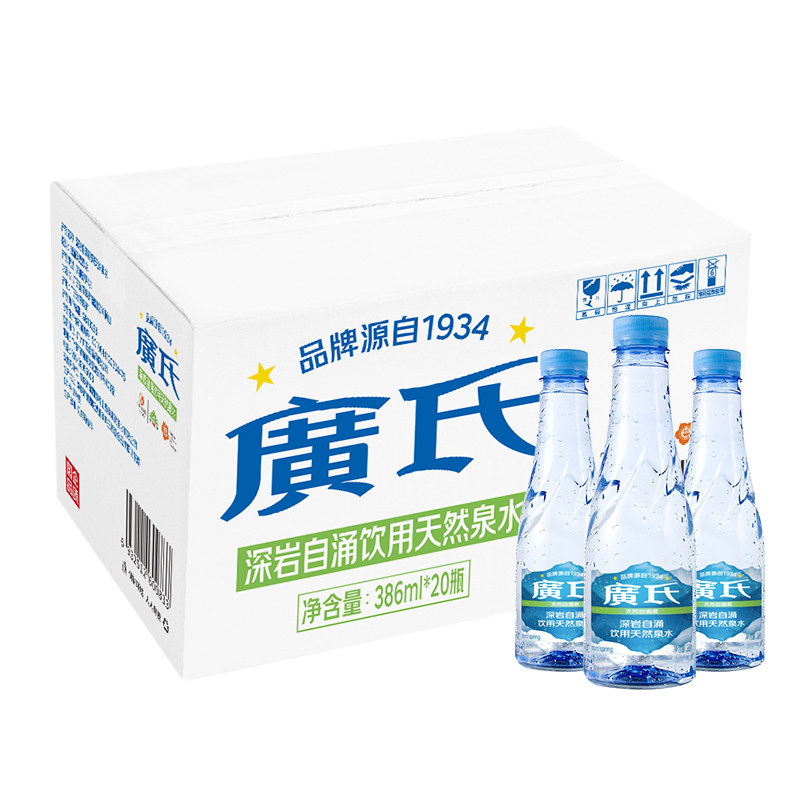 📚 新品广氏天然饮用泉水386ml*20瓶整箱 天然自涌深岩泉水 柯山泉水