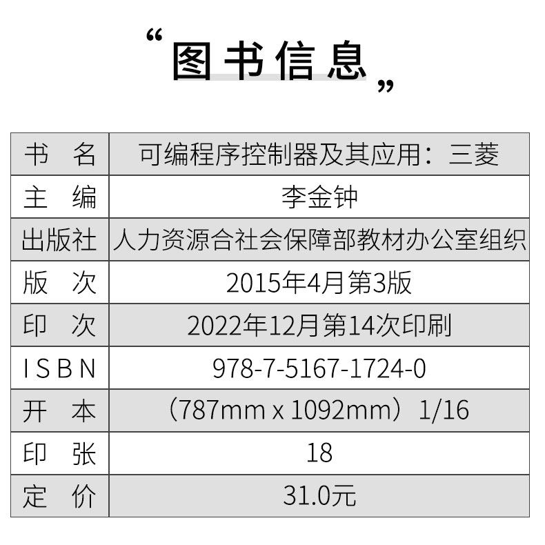 📚 中职教材可编程序控制器及其应用三菱 第三版 中国劳动社会保障出版社 职高中等职业学校电工类专业通用教材课本职业教育规划教材