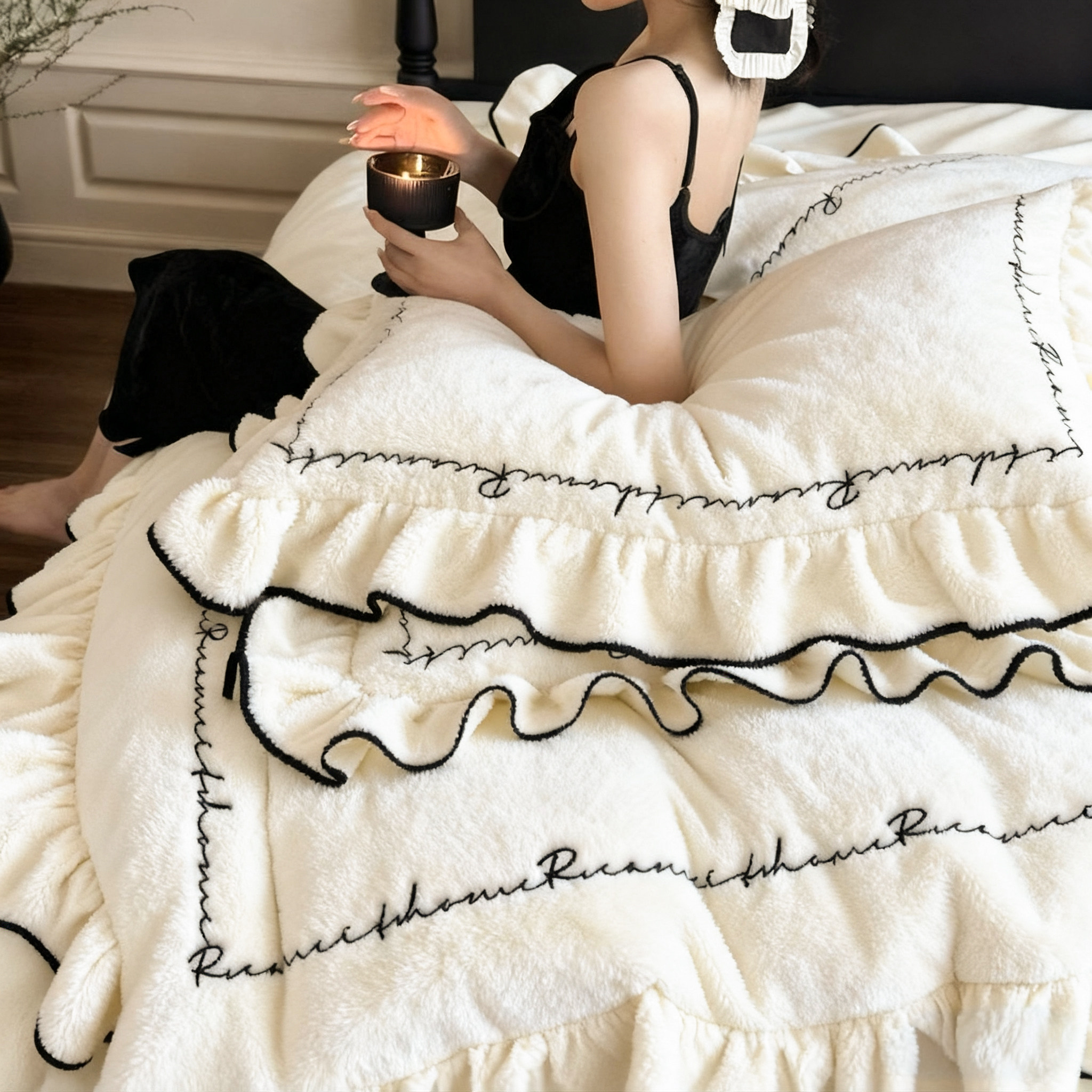 📚 法式浪漫荷叶花边双面牛奶绒枕套一对装高级感加厚保暖枕芯套枕头