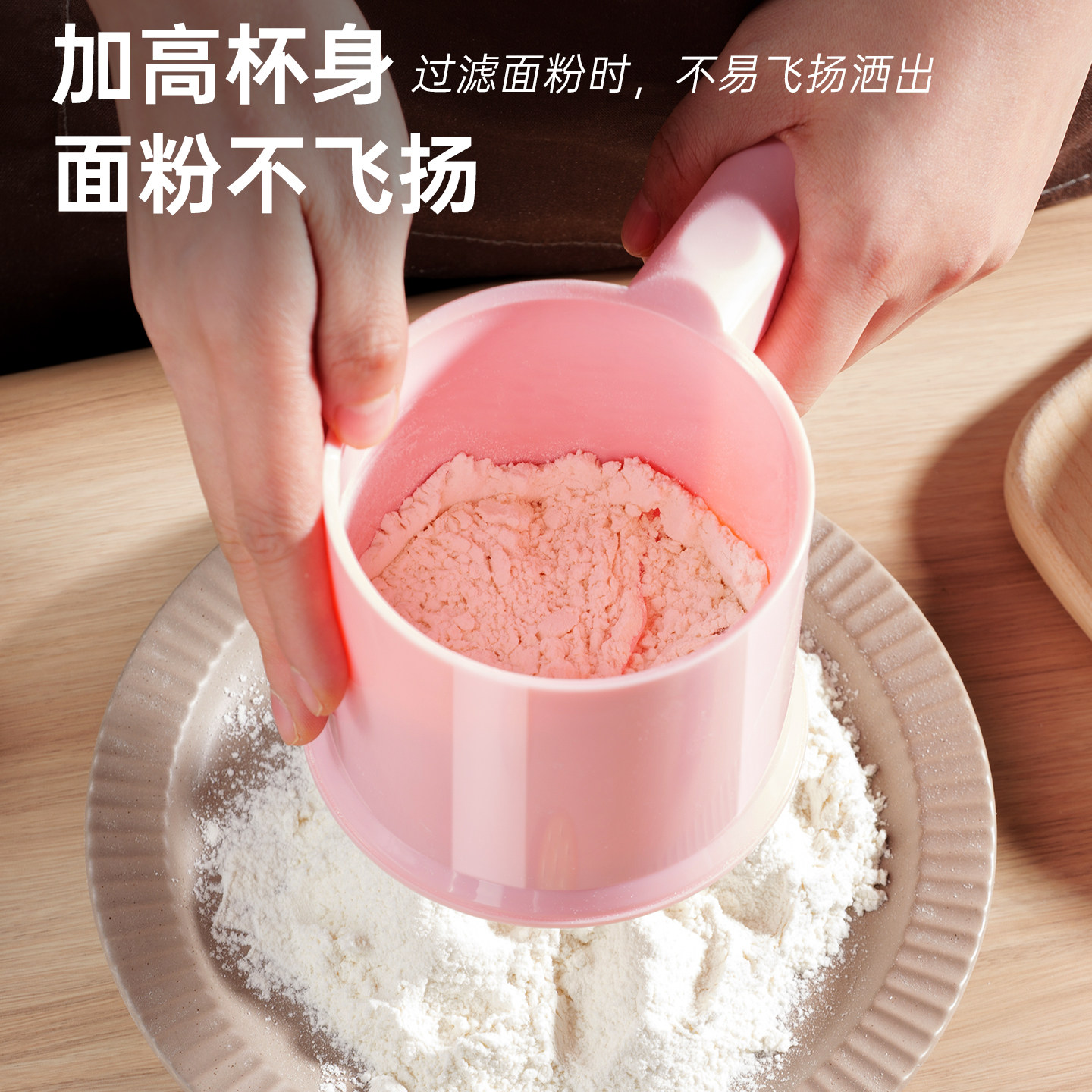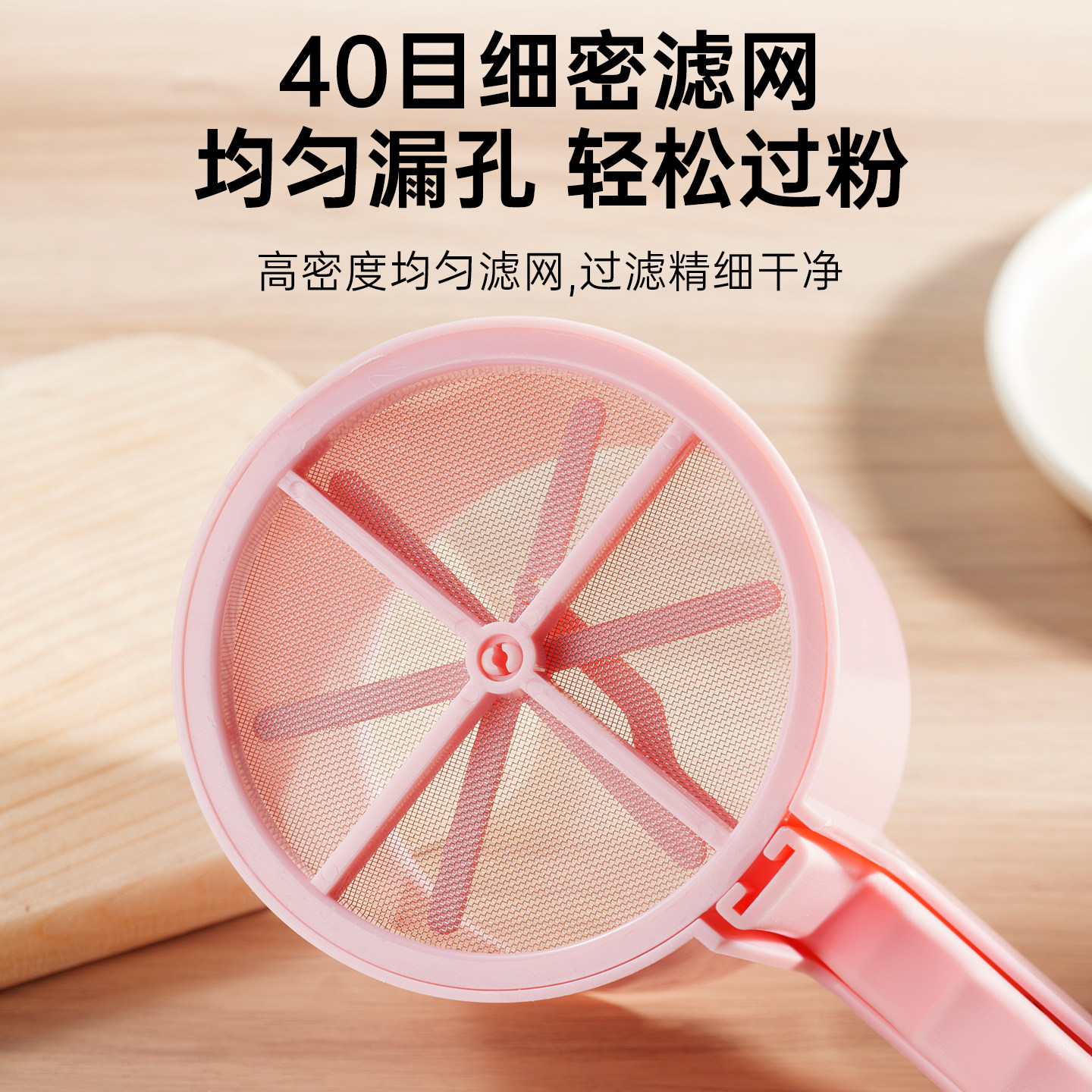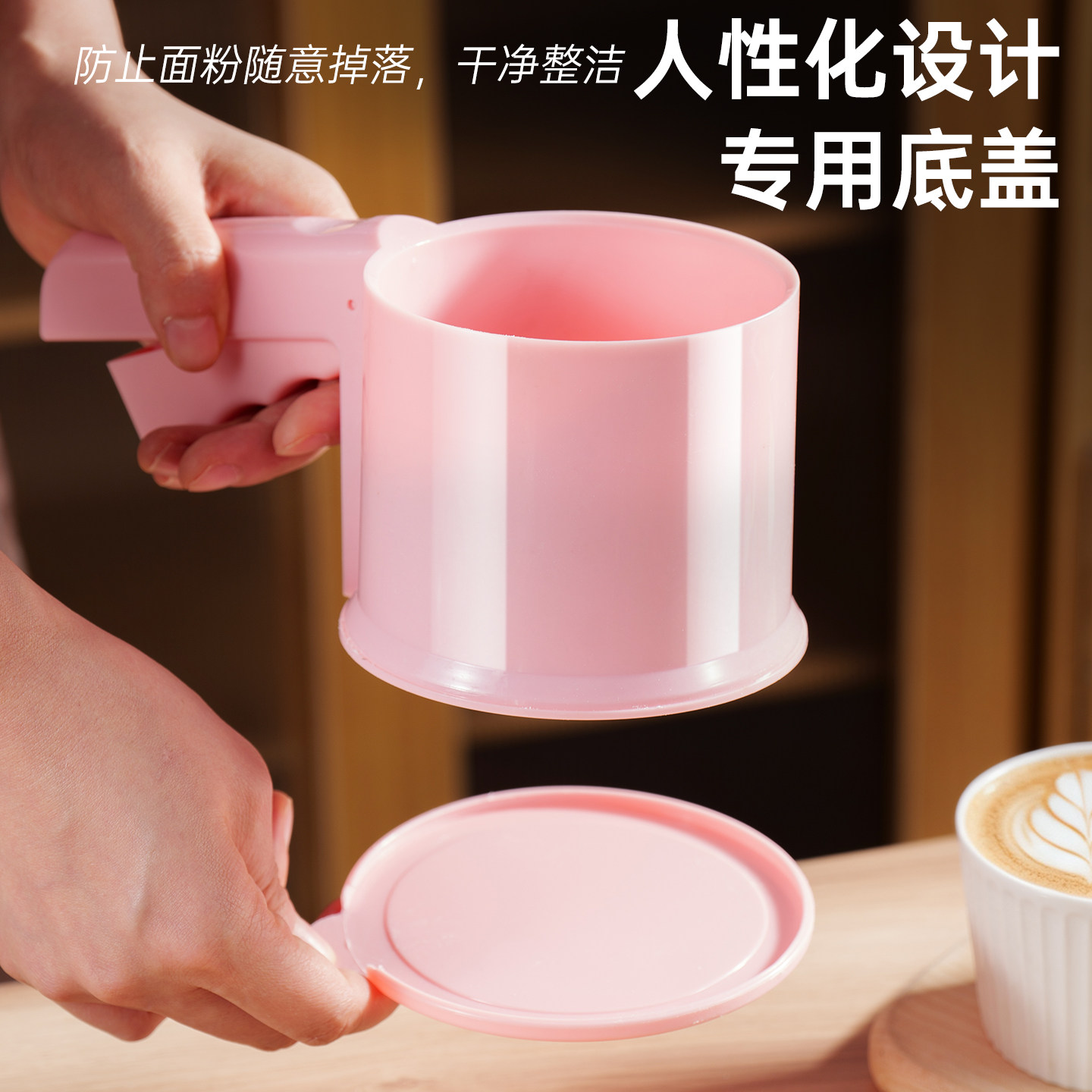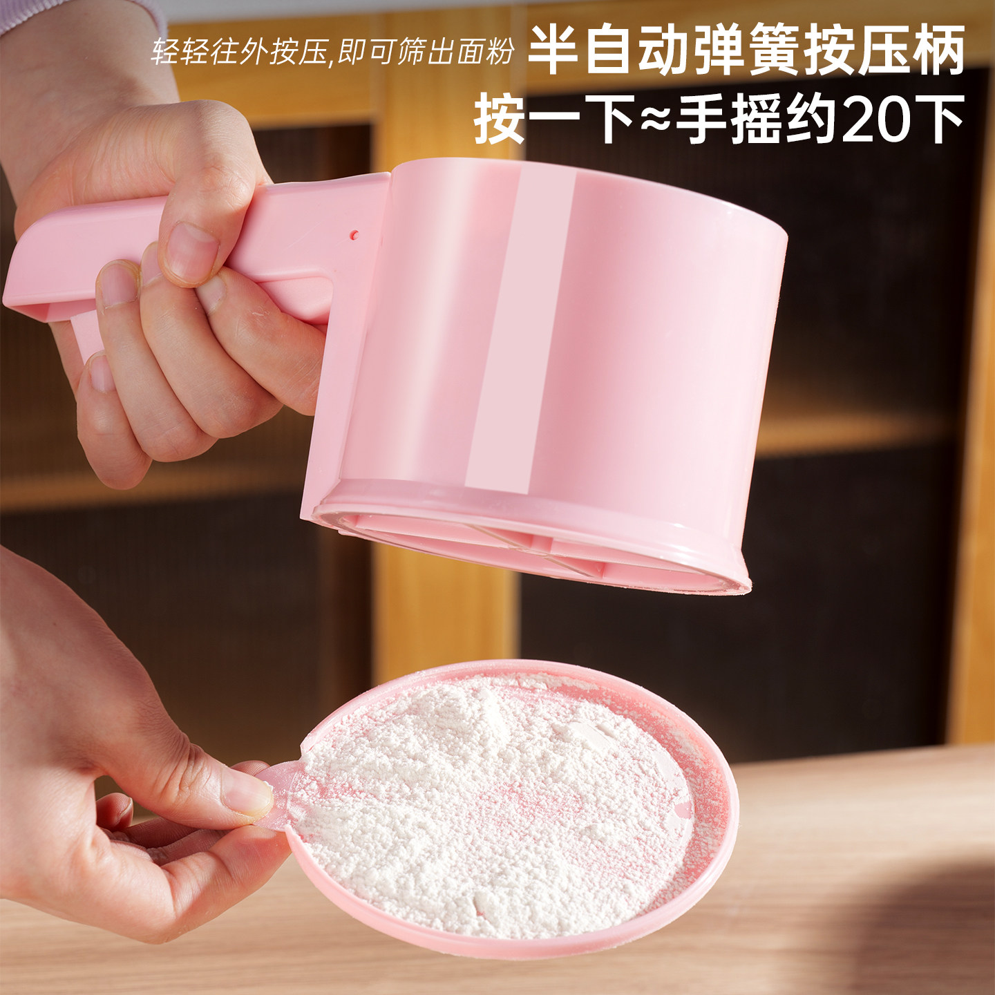 📚 粉色手持半自动面粉筛烘焙粉筛过筛器专用筛粉工具过滤网神器带盖