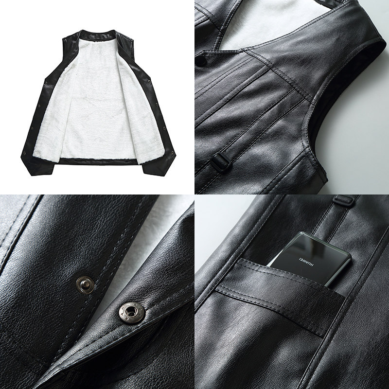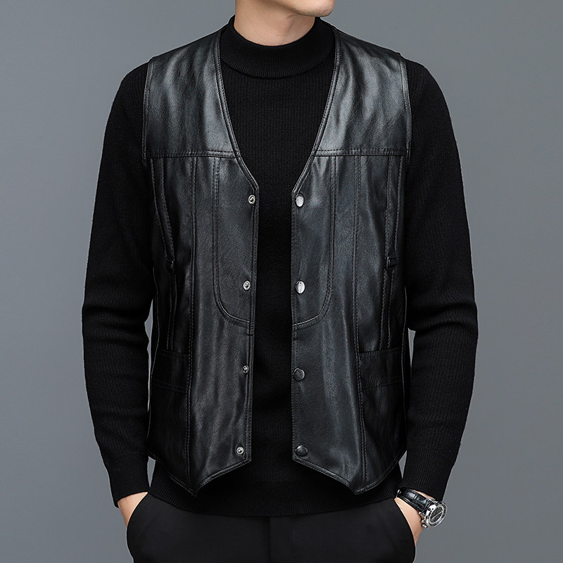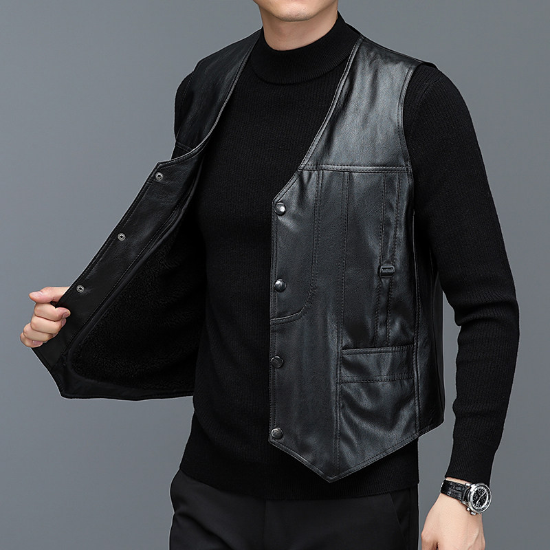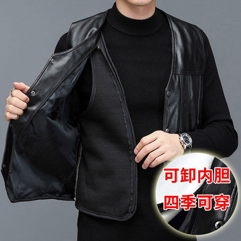 📚 中老年皮马甲男秋冬加绒加厚爸爸冬装皮衣背心保暖老人皮坎肩休闲