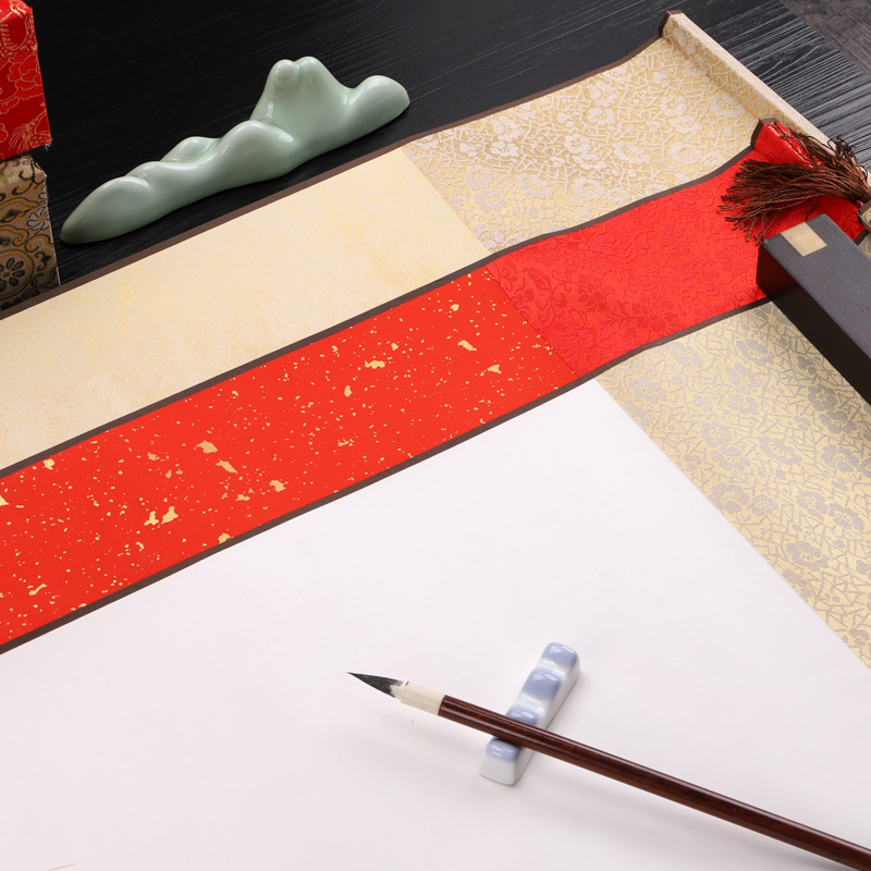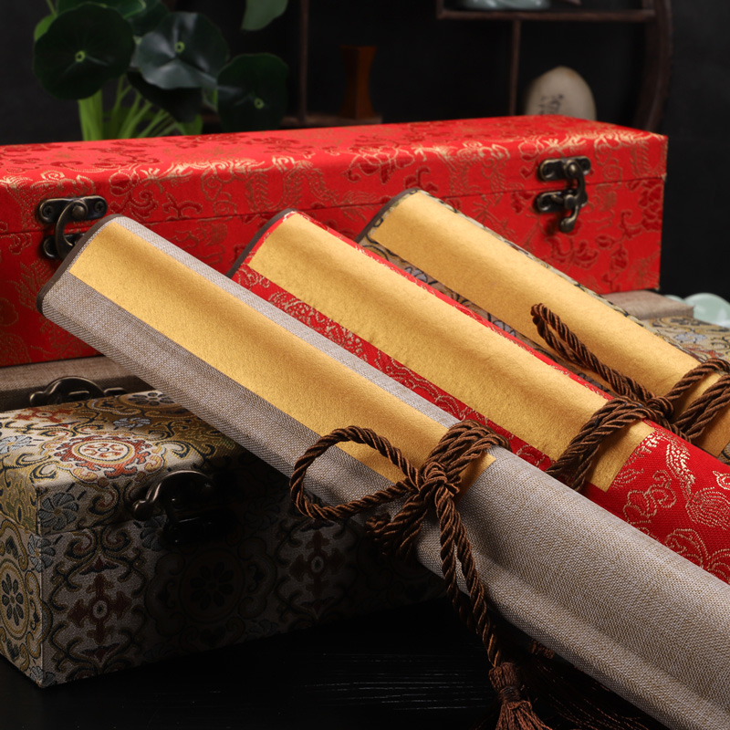 📚 宣纸画轴空白卷轴手卷书法半生熟国画蜡染装裱长卷横幅挂轴竖版画卷拜师帖高档长轴圣旨结婚道具仿古书画婚书