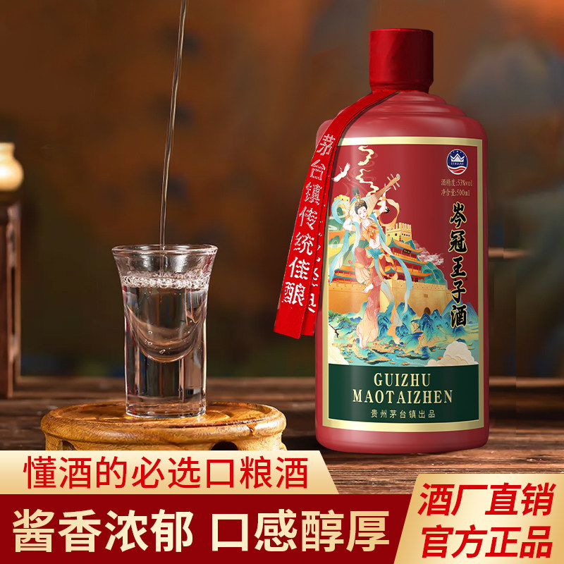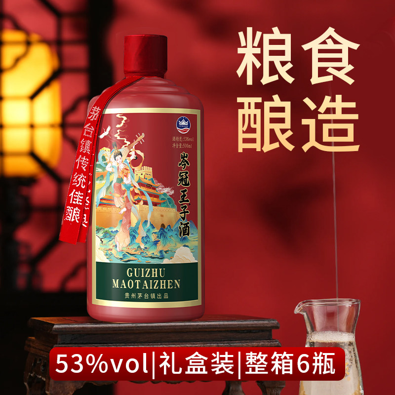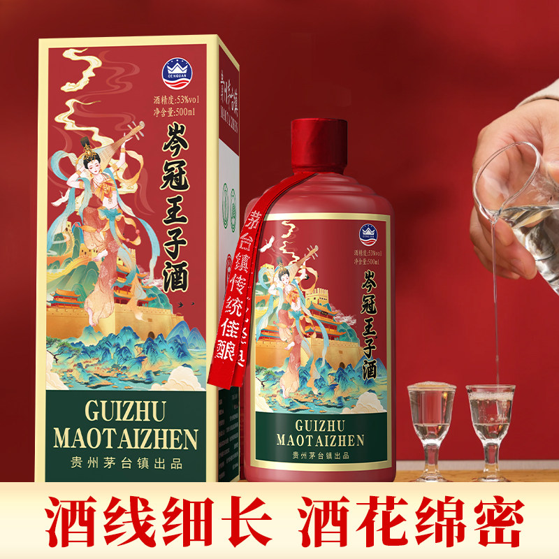 📚 青案台岑冠王子酒白酒500ml53度1949纯粮食酒礼盒装坤沙酒水