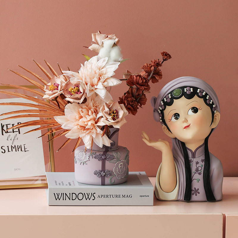📚 轻奢旗袍花瓶中式古风摆件高级感客厅插花玄关电视酒柜家居装饰品