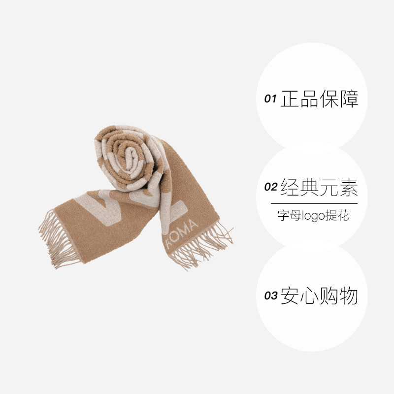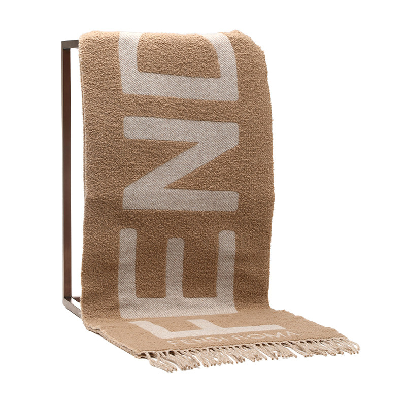 📚 【自营】FENDI芬迪logo标志女士羊毛绒线流苏长款围巾披肩丝巾