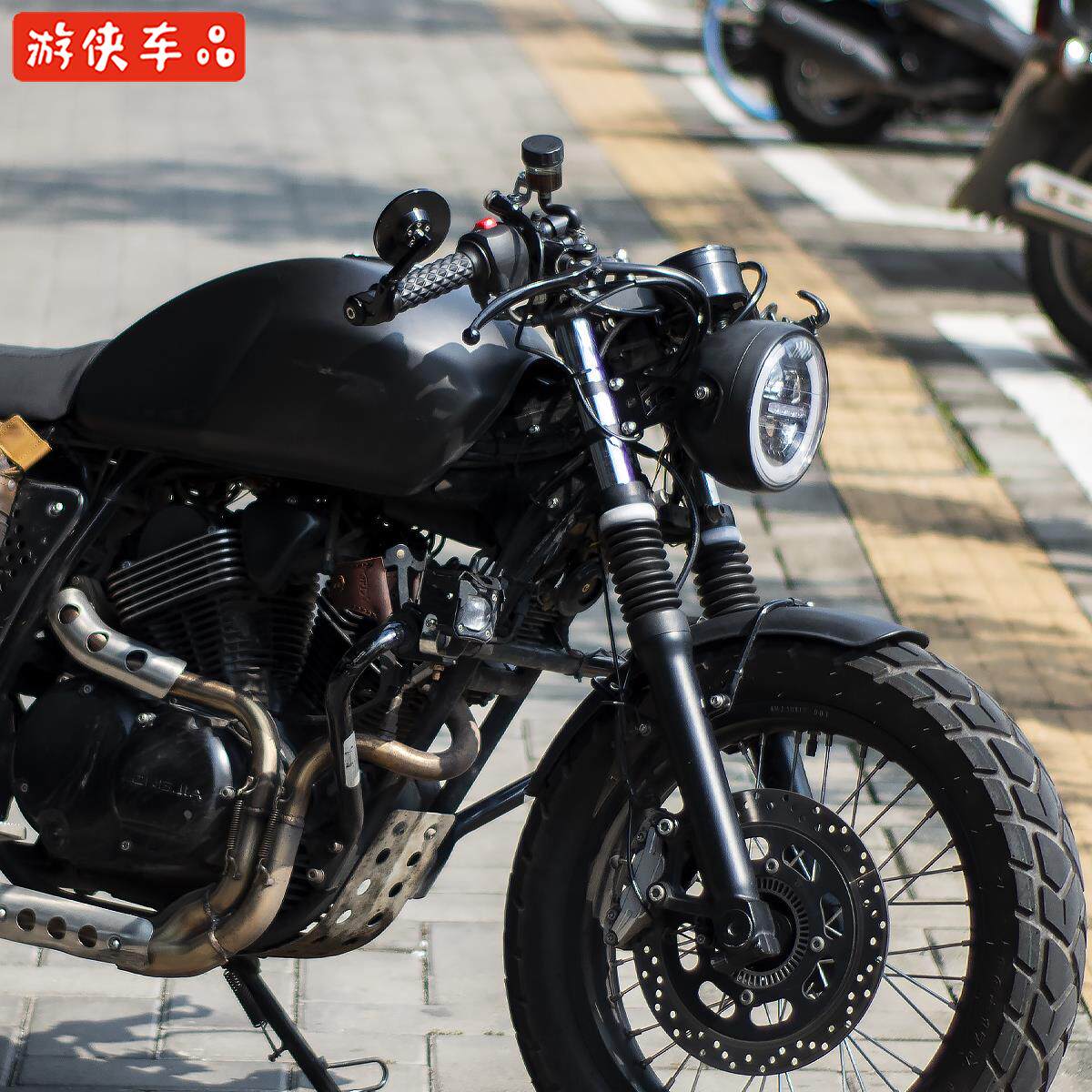 📚 龙嘉V咖复古摩托车改装车把可调37mm加高分离把大脚怪分体方向把
