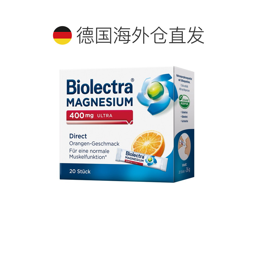 📚 欧洲直邮德国Biolectra氧化镁高剂量400mg补镁口溶粉20包无糖橘子