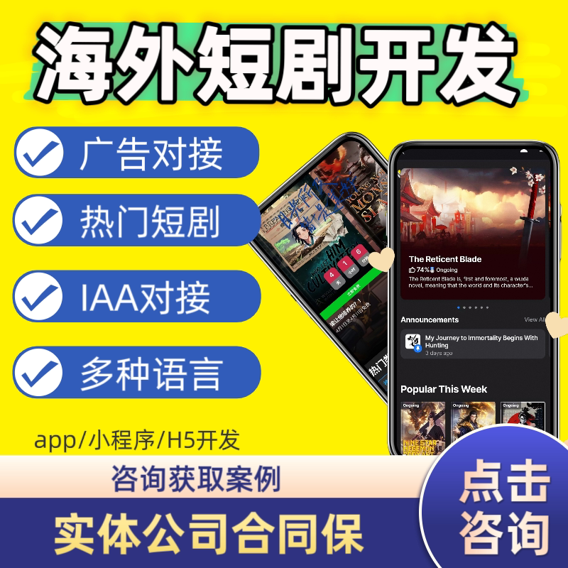 📚 海外短剧系统开发多语言源码部署出海app搭建上架h5对接广告分销
