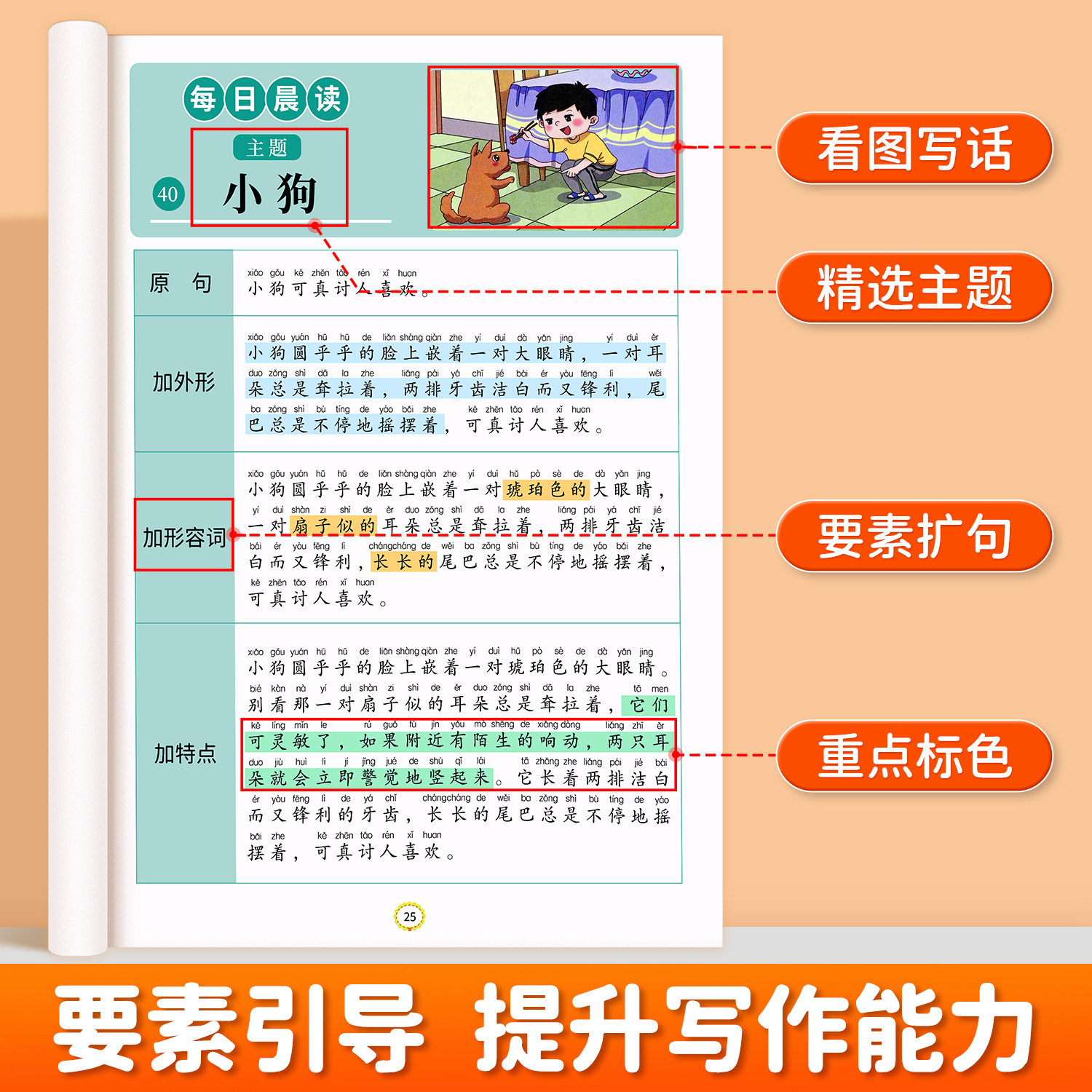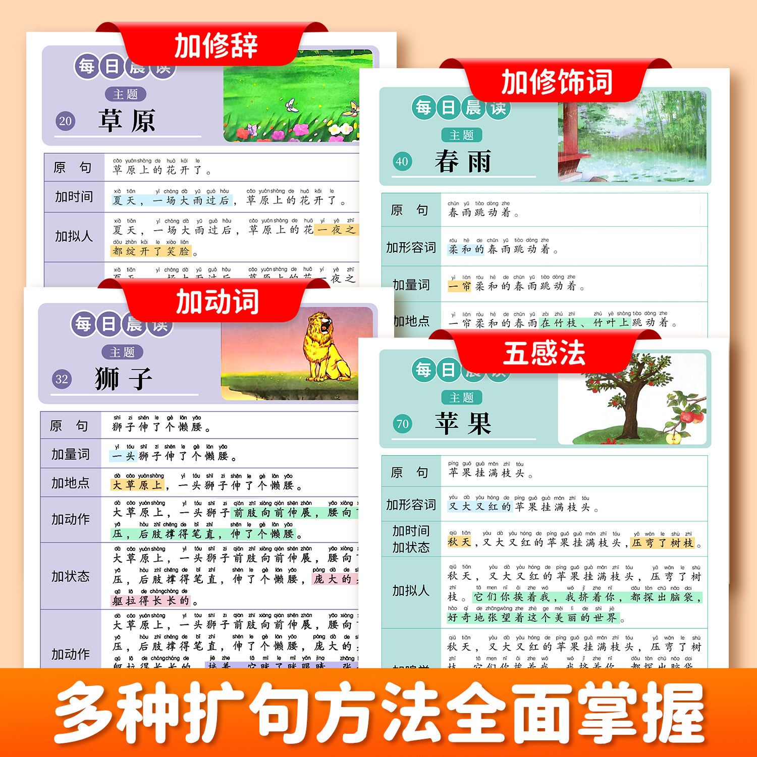 📚 小学语文每日晨读扩句法每日晨读好词好句好段写作启蒙素材大全一二年级语文阅读课外书打卡优美句子积累看图写话作文素材练习基础
