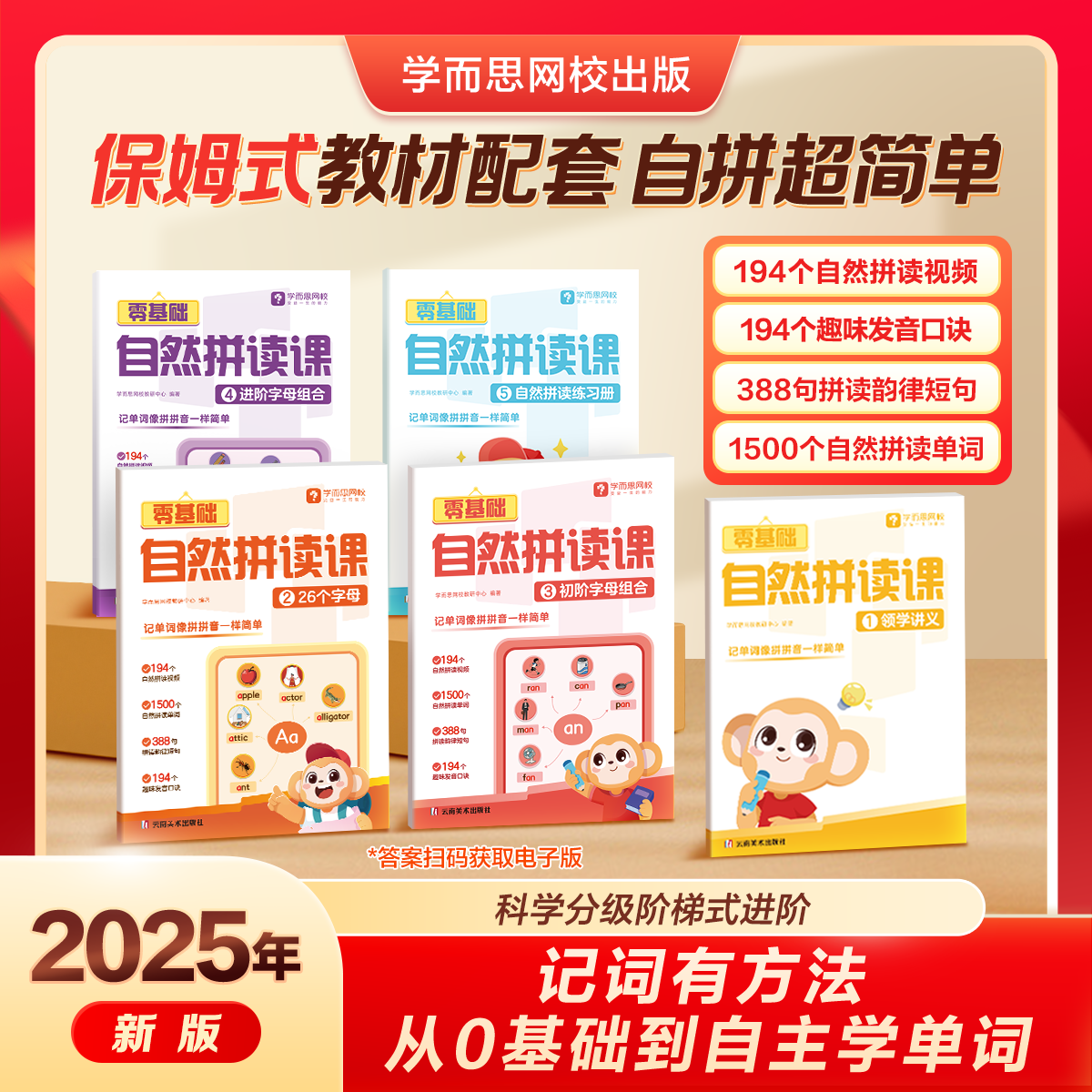 📚 学而思英语零基础自然拼读课 趣味学习字母规则 拼读法秒记1000词 小学英语一二三四五六年级通用0基础自然拼读学训测试练习册-WX