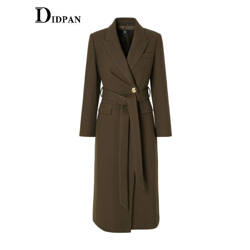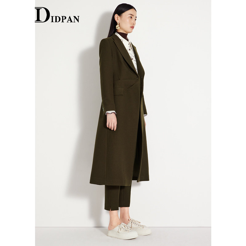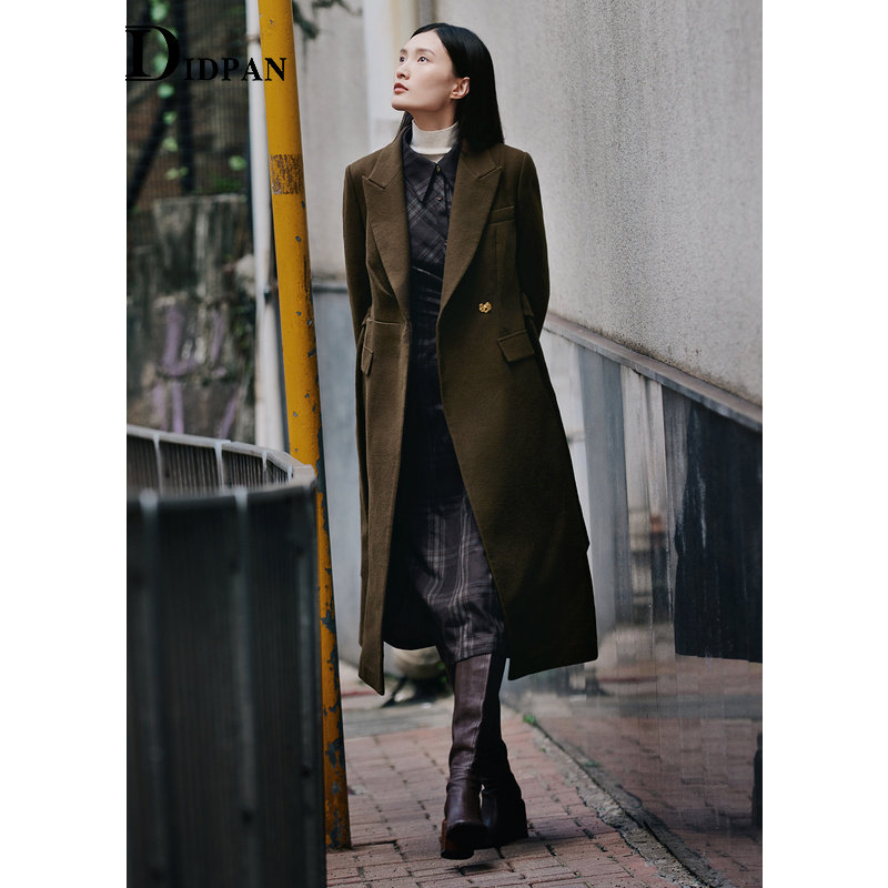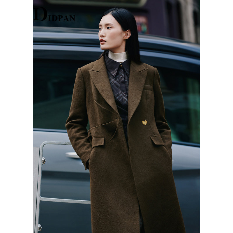 📚 IDPAN女装冬季新款帅气戗驳领气质职场通勤长大衣毛呢外套女