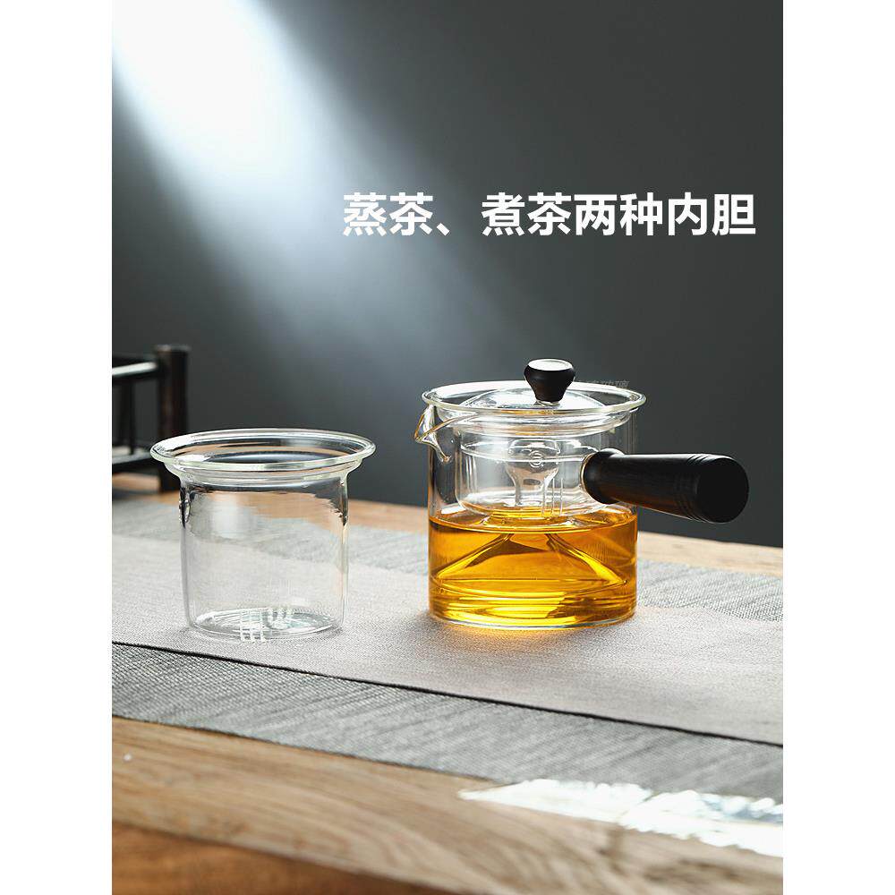 📚 玻璃茶壶侧把壶蒸茶壶煮茶壶蒸茶器煮茶器加厚耐高温全自动蒸汽壶