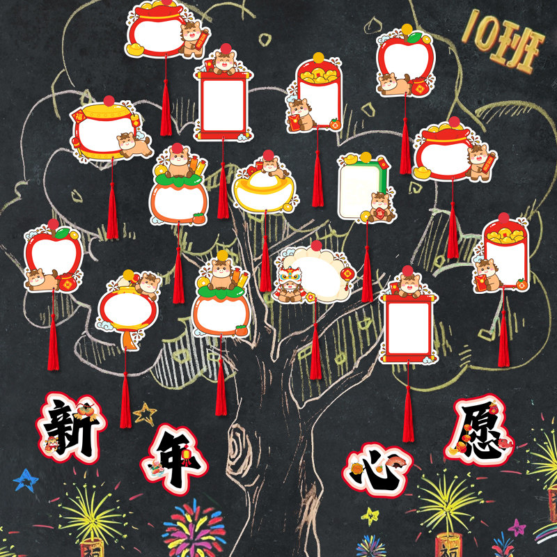 📚 2026马年手写心愿祝福贺卡幼儿园儿童新年许愿目标墙挂卡小学生开学愿望留言墙贴吊卡片纸班级黑板报布置道具