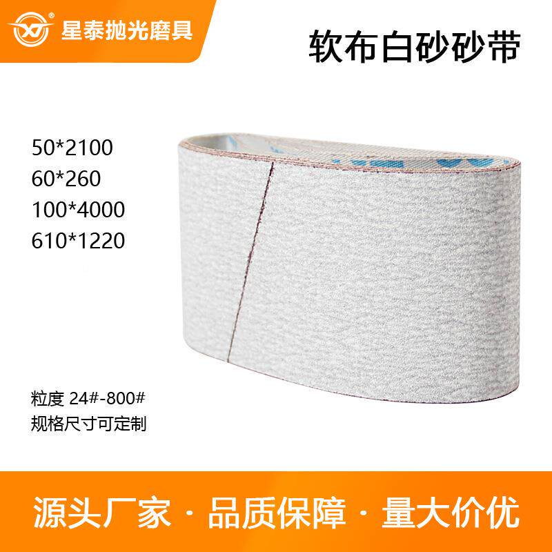 📚 厂家涂层布白砂带除锈打磨抛光形磨料软白布基砂纸砂80#-400#环砂