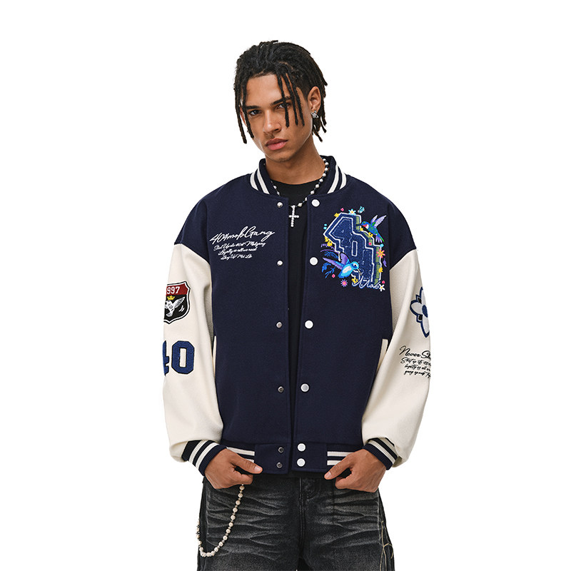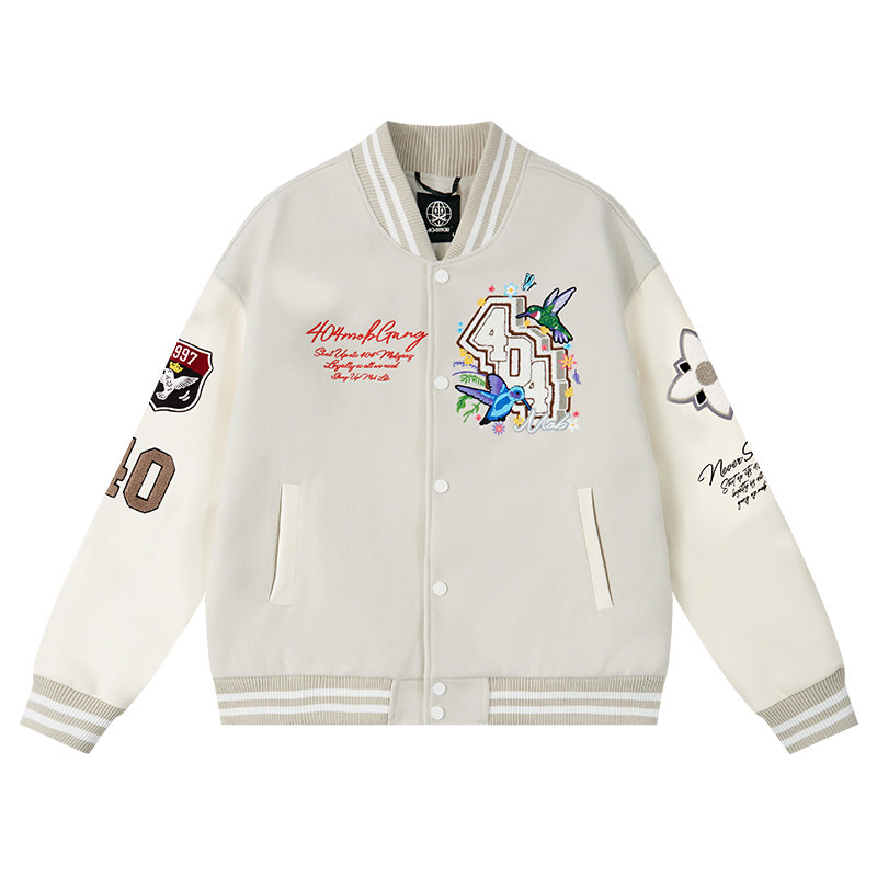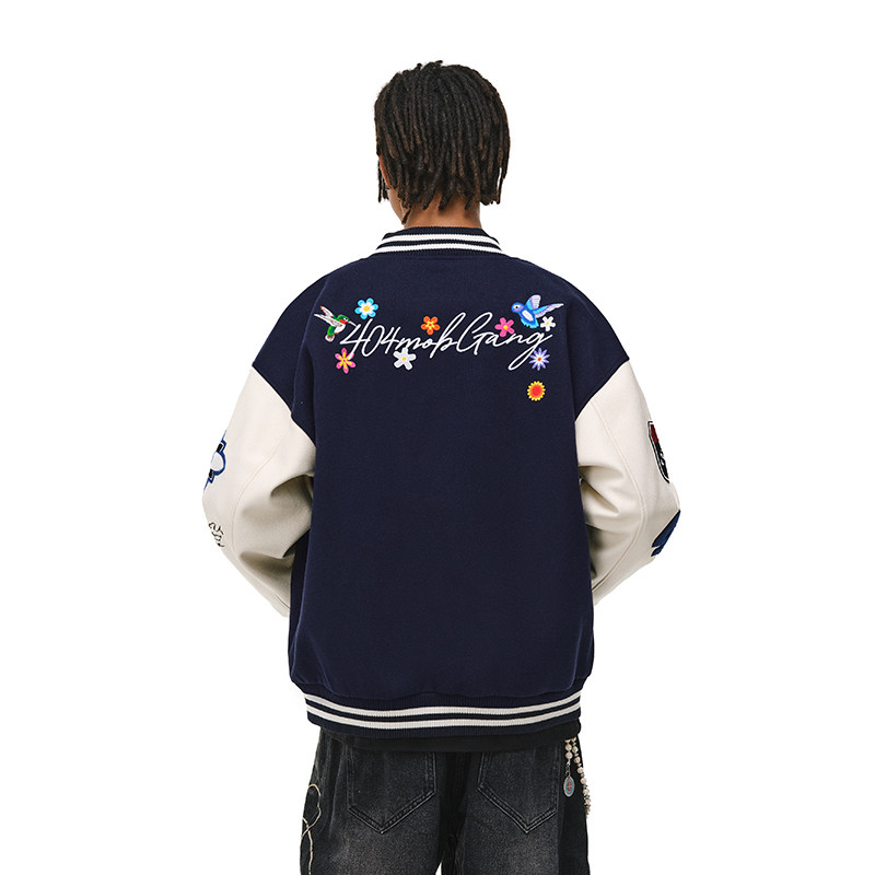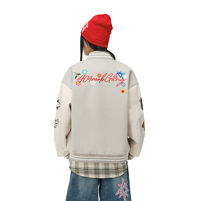 📚 404MOB蜂鸟刺绣重磅秋冬棒球服外套男女潮牌宽松厚款情侣飞行夹克