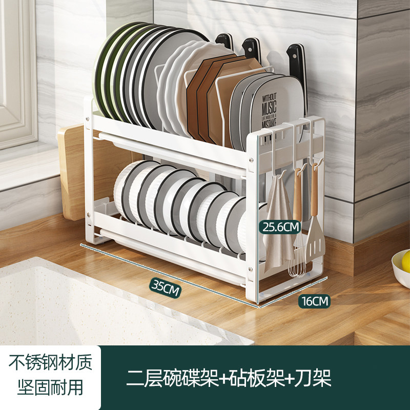 📚 不锈钢碗碟架h厨房置物架桌面放碗架沥水架双层台面碗筷窗台收纳