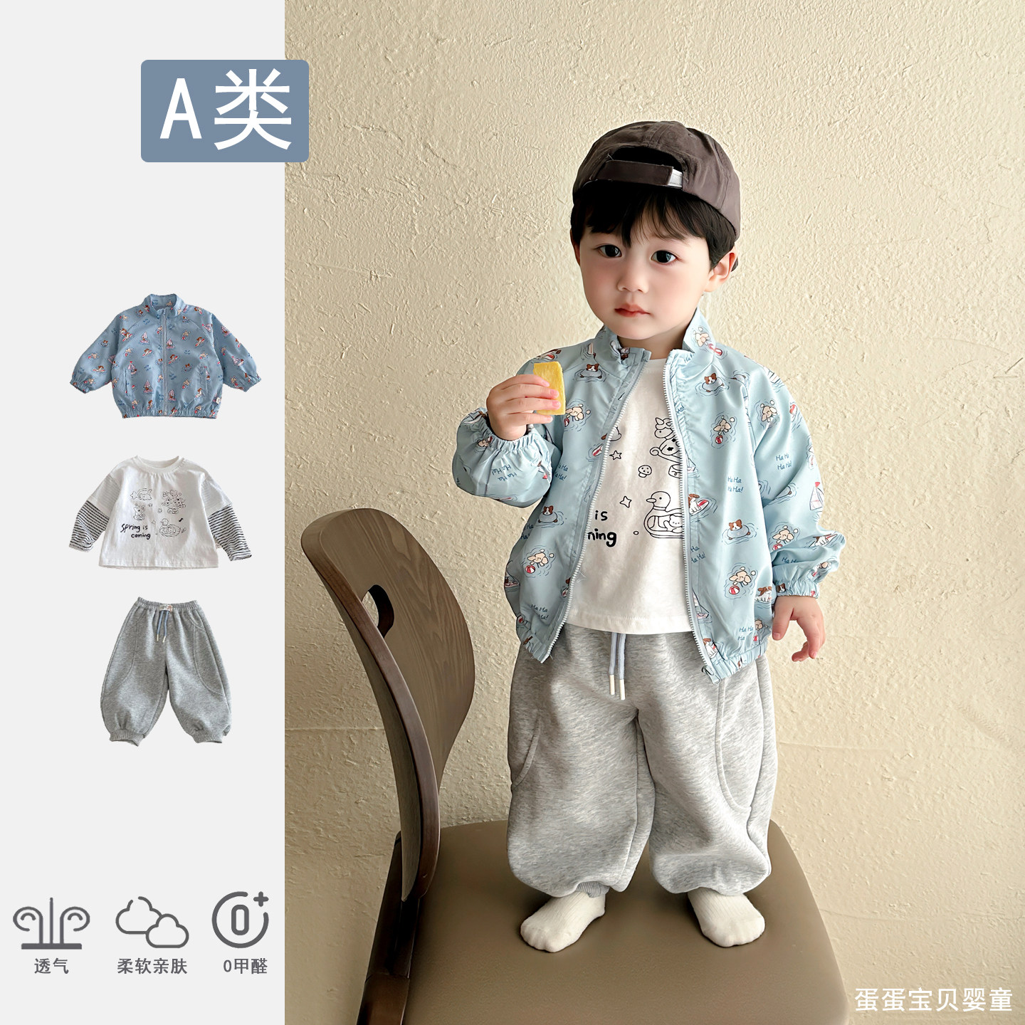 📚 春季洋气男童外套T恤裤子洋气春款宝宝春装套装帅气婴儿衣服外出