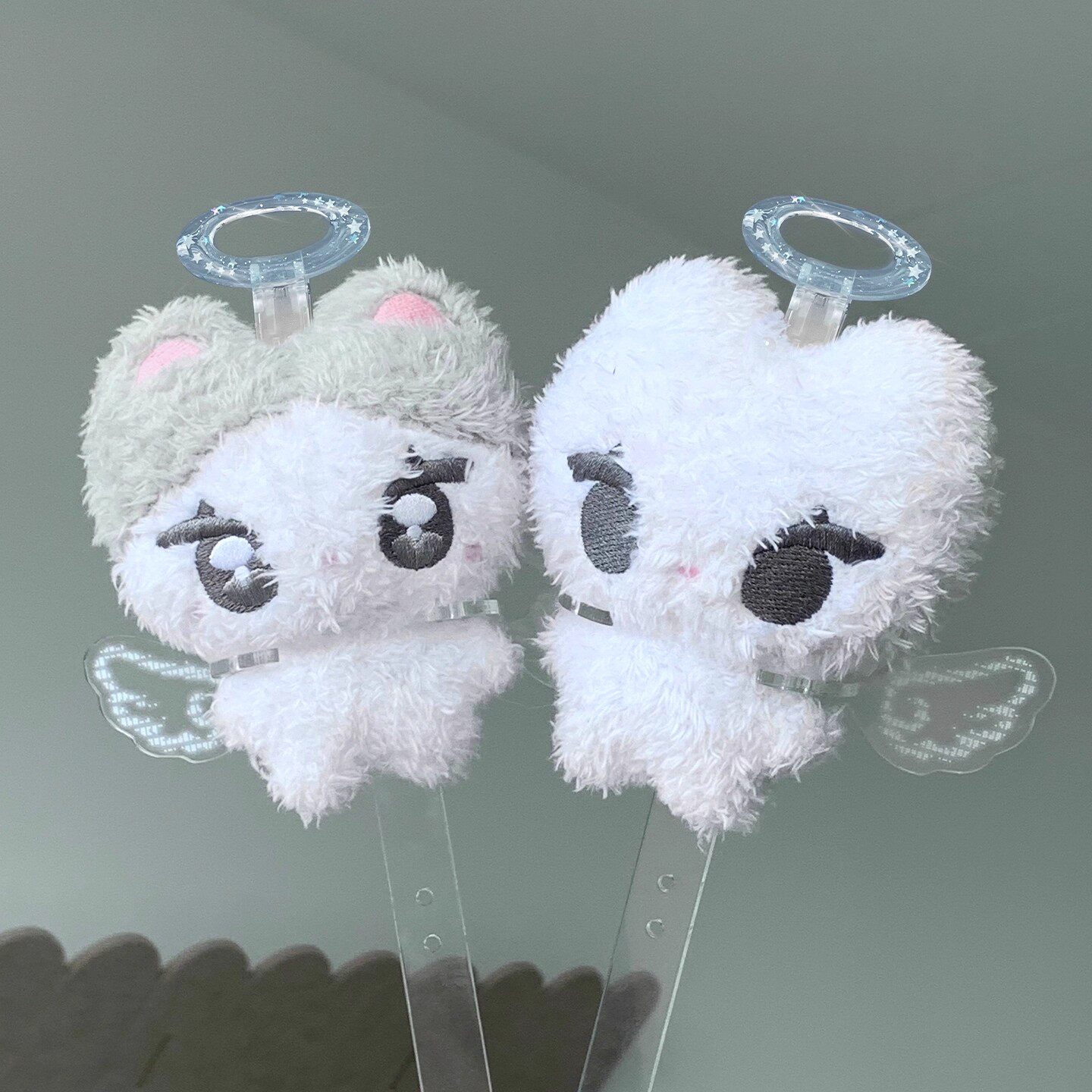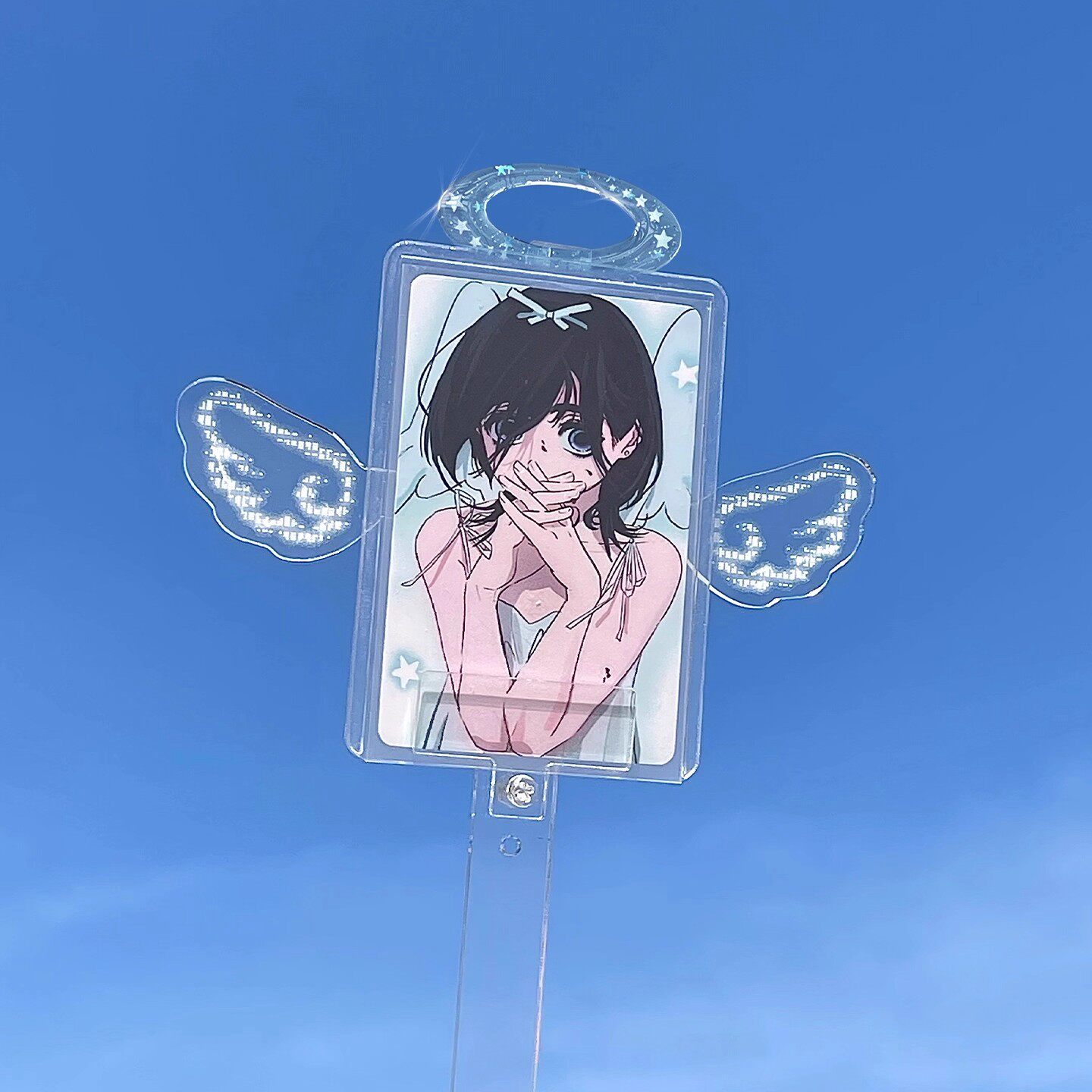 📚 娃娃打卡棒7cm玩偶棉花娃娃高颜值天使翅膀亚克力手持透明夹子