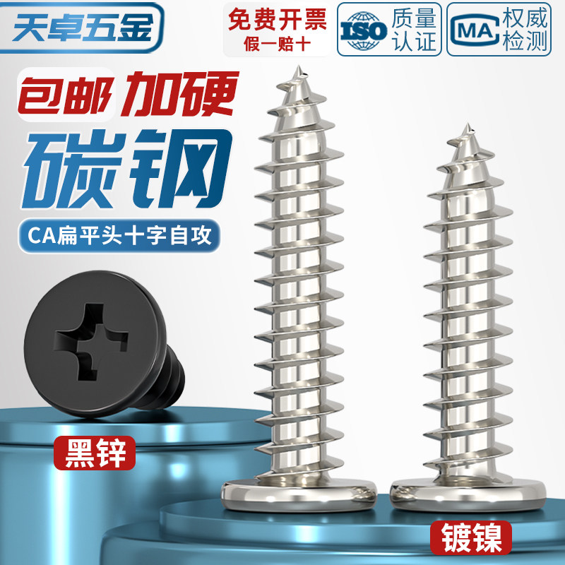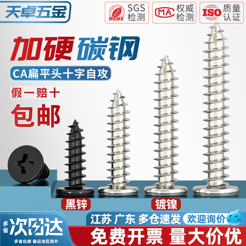 📚 CA铁镀镍/黑色扁平头十字自攻螺丝钉大扁薄头子平头尖尾木自攻丝