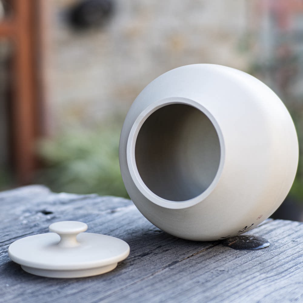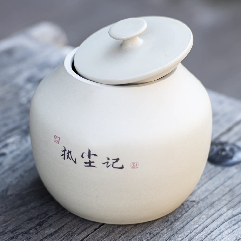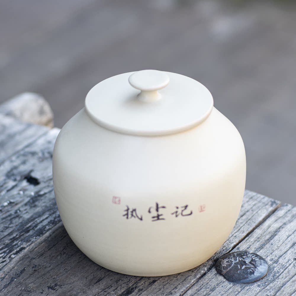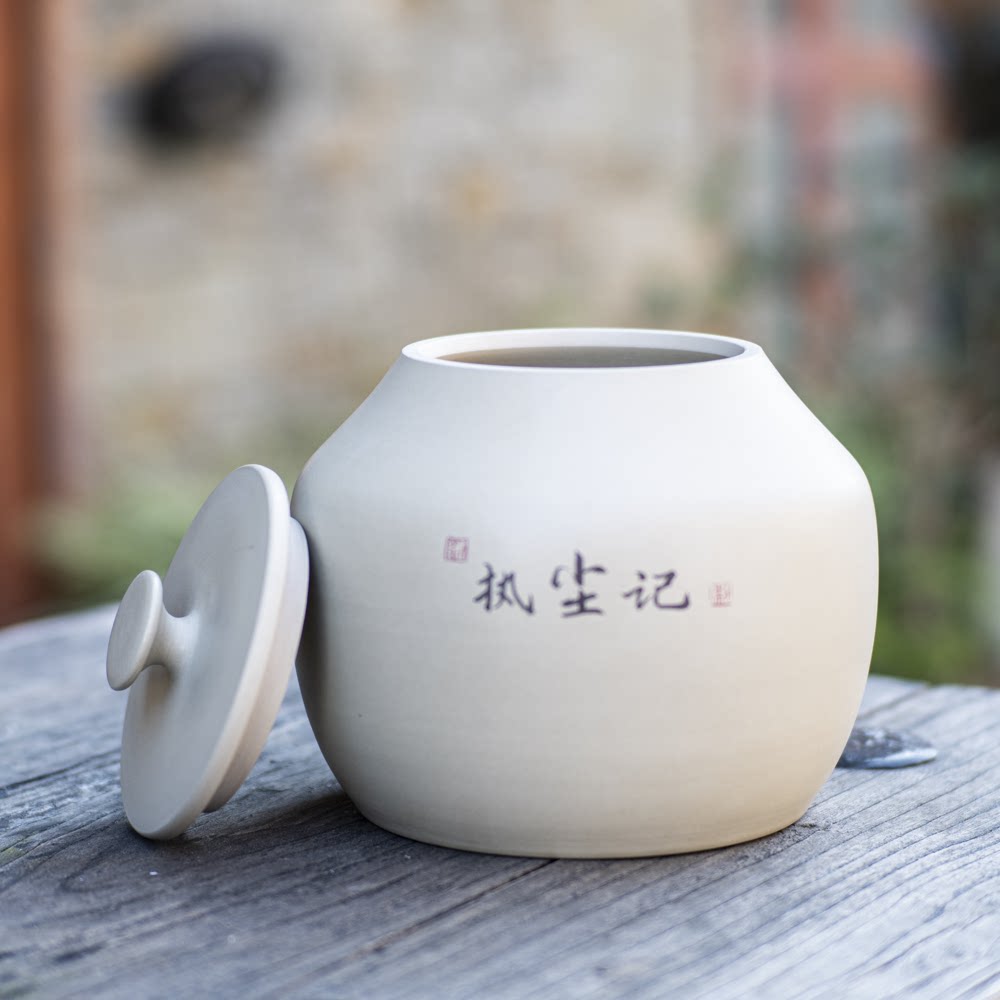 📚 【执尘记】建水紫陶白泥茶叶罐纯手工阴刻阳填存储普洱散醒饼茶缸