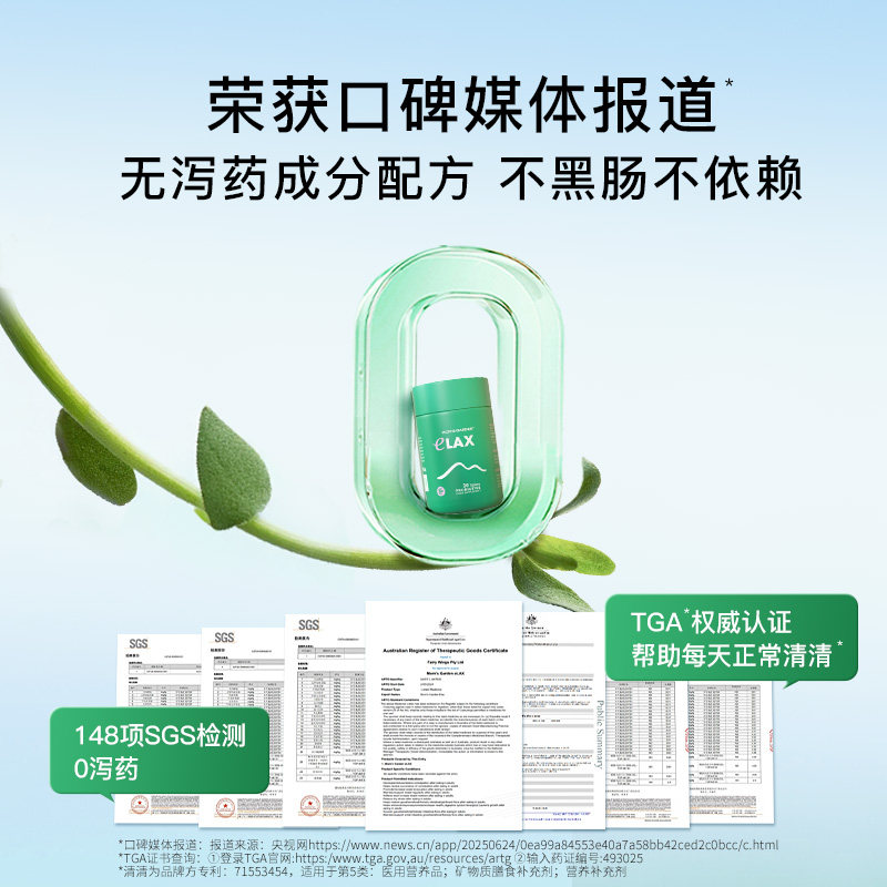 📚 百草园清清片德国进口益生元膳食纤维8h速排解便秘无泻药成人专用