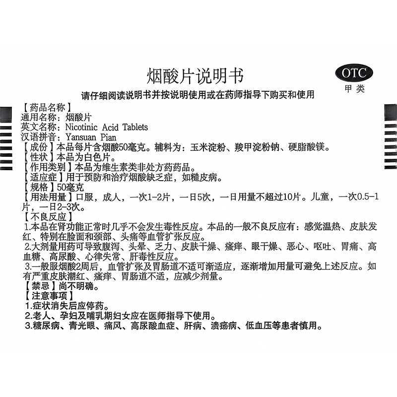 📚 力生 三鱼 烟酸片 50mg*100片*1瓶/盒 烟酰胺缺乏 糙皮病bx yf ty