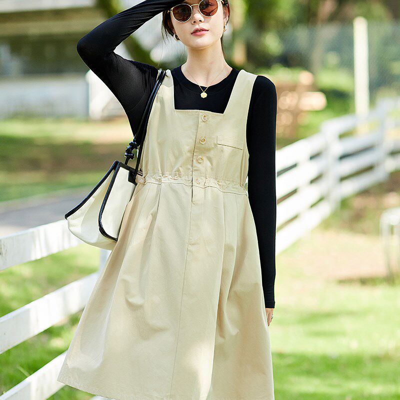 📚 孕妇套装方领无袖裙圆领针织长袖薄款打底衫春秋中长款两件套