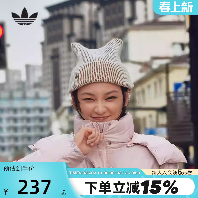 📚 adidas阿迪达斯三叶草猫耳冷帽冬无檐便帽毛线帽男女针织帽IA8910