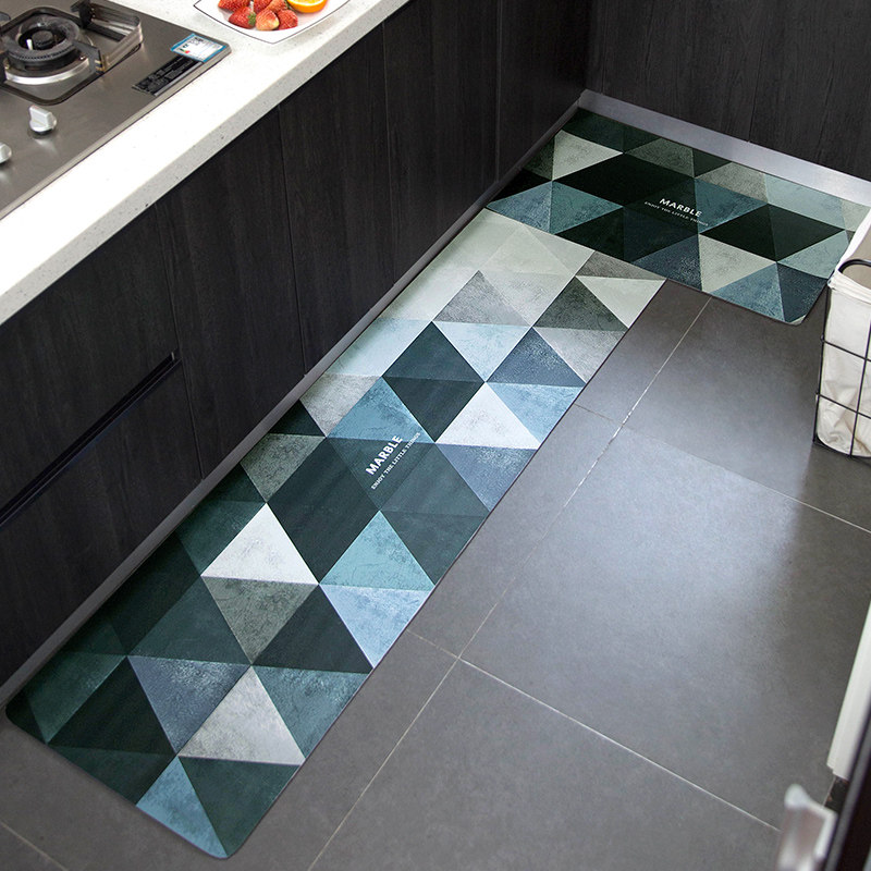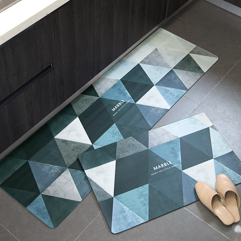 📚 皮革地垫三角几何pvc免洗防污防滑厨房脚垫进门口洗手间地毯