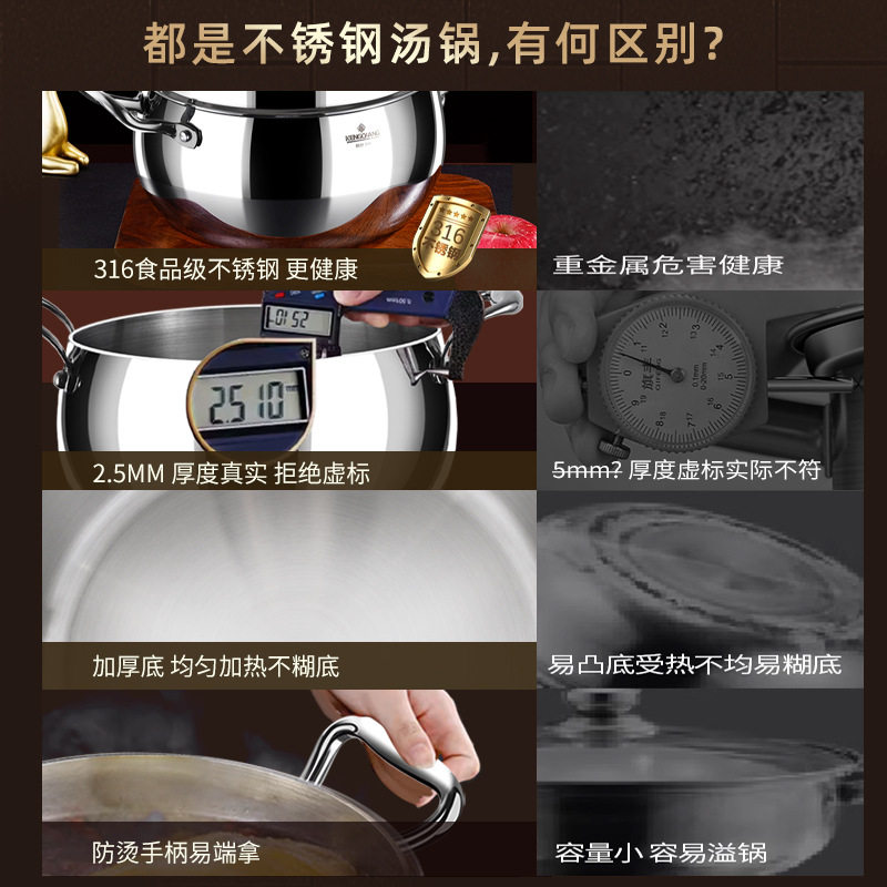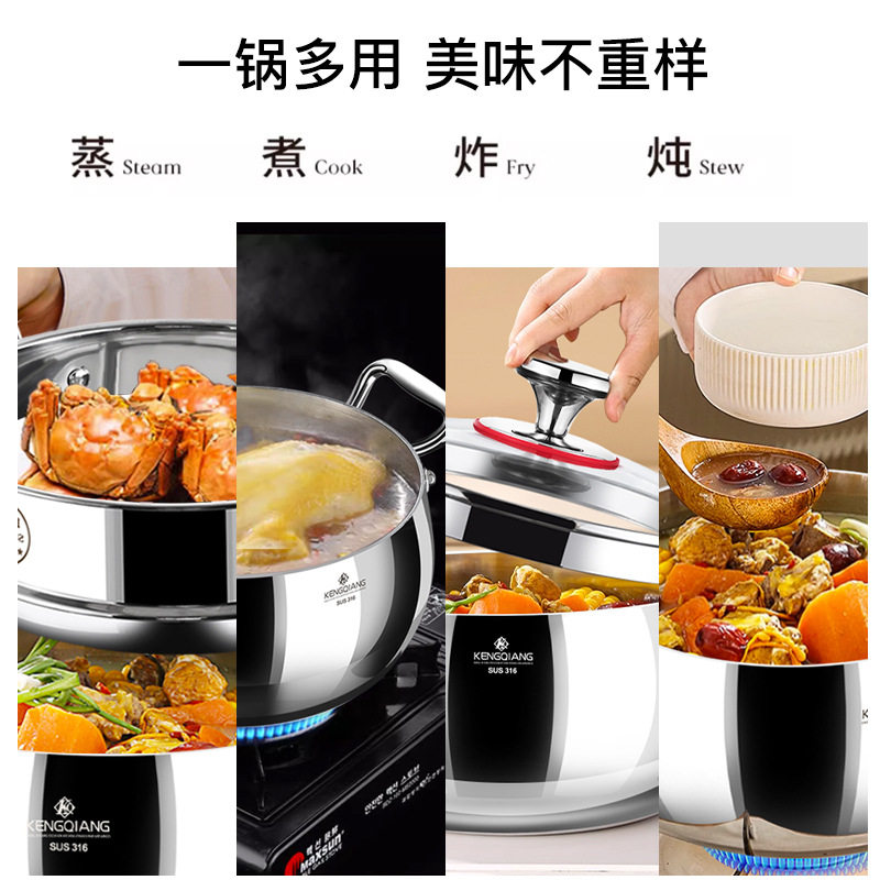 📚 316不锈钢蒸锅家用加厚蒸煮一体双层蒸屉食品级电磁炉汤锅带蒸笼