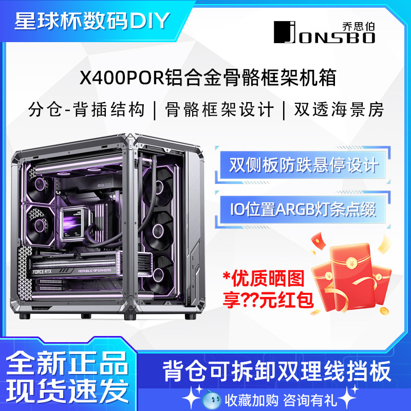 📚 乔思伯X400 PRO铝合金海景房机箱侧透ATX台式机电脑主机360水冷