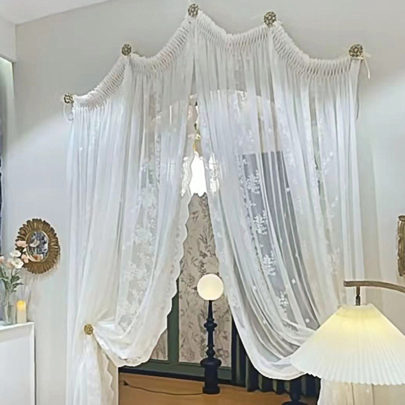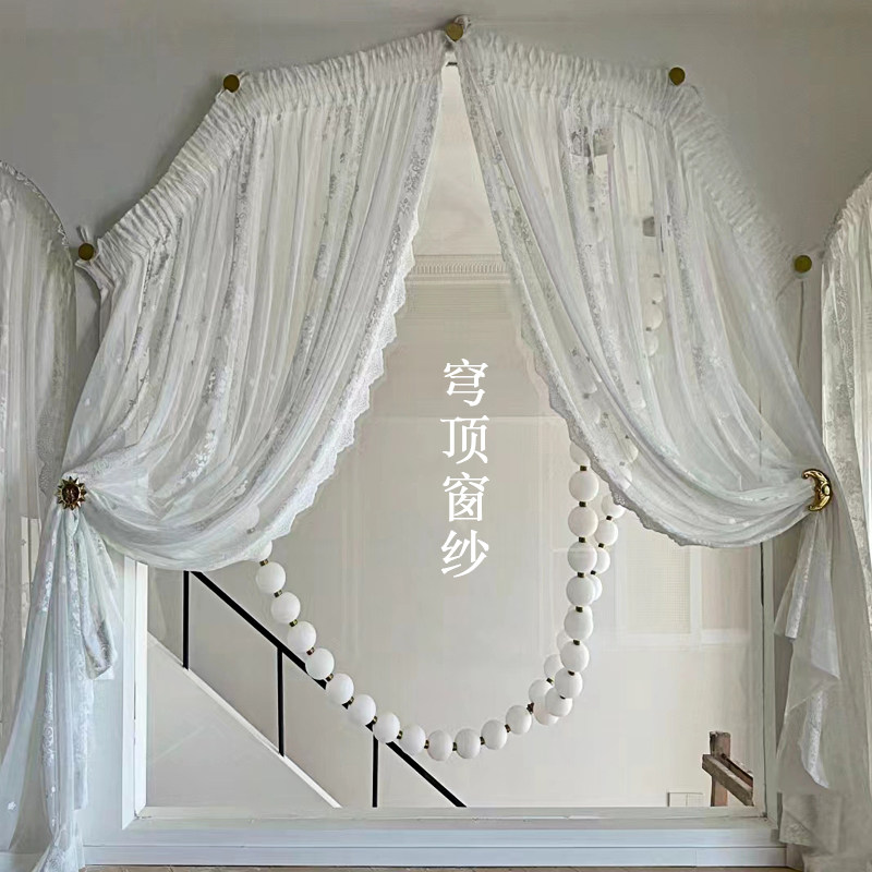 📚 2024新复古穹顶式美式刺绣花边窗纱窗帘隔断帘门帘纱定做客厅书房