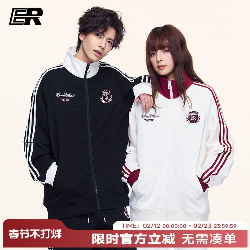 📚 【明星同款】ER泽西风徽章华夫格条纹撞色立领卫衣外套运动套装