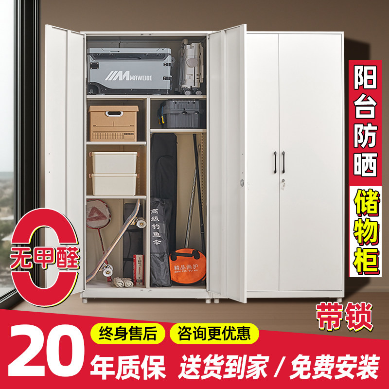 📚 阳台防晒储物柜铁皮柜钢制无甲醛家用对开门带锁可放行李箱收纳柜