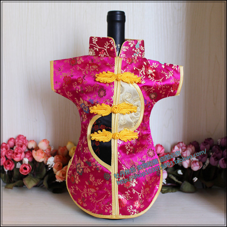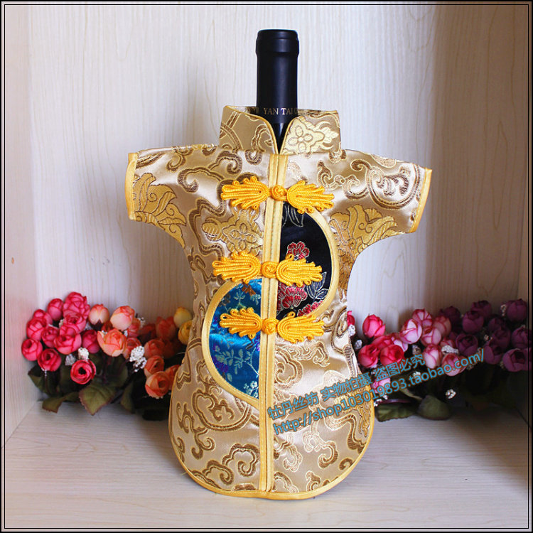 📚 特价盘扣唐装红酒瓶套婚庆酒瓶防尘罩中式绸缎酒瓶罩外事礼品明清