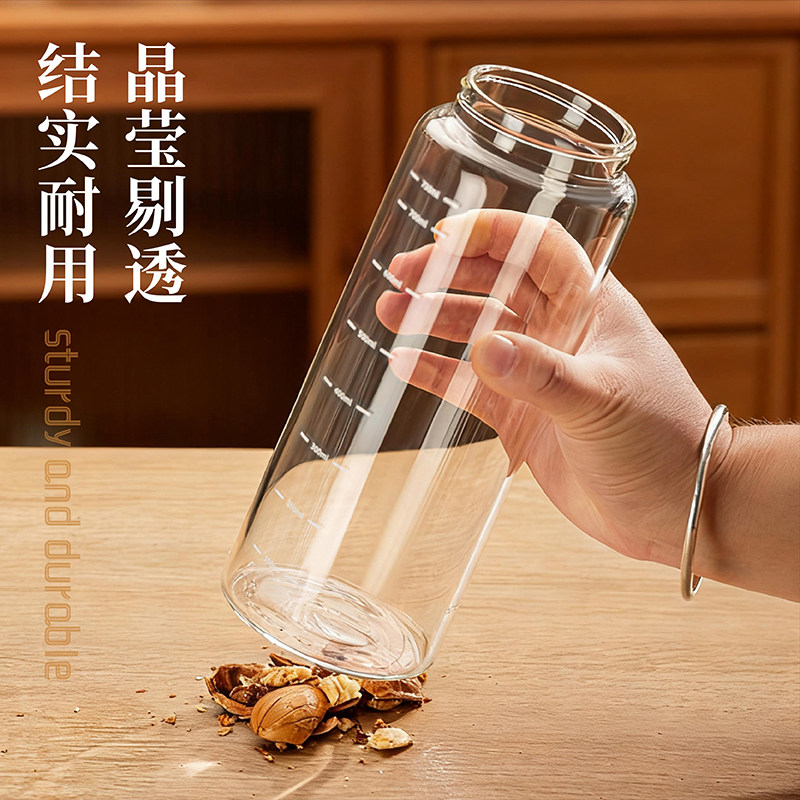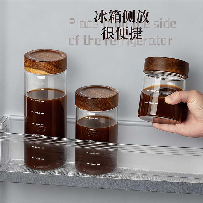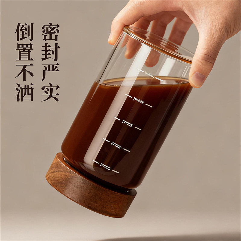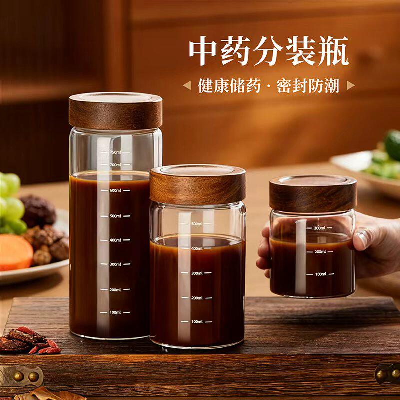 📚 相思木玻璃杯带刻度中药分装瓶木盖密封防潮储物罐健康储药杯便携