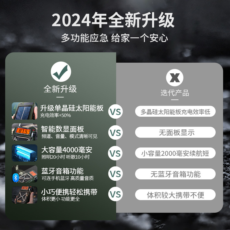 📚 手摇发电收音机太阳能应急防灾战备急救末日军工生存装备手电筒