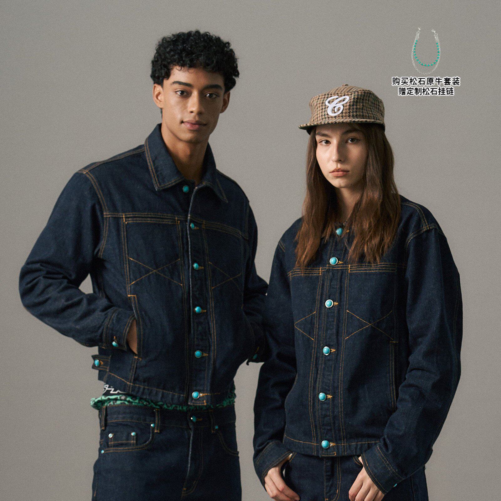 📚 s45丹宁牛仔原牛定制仿绿松石牛仔夹克正肩短宽夹克外套