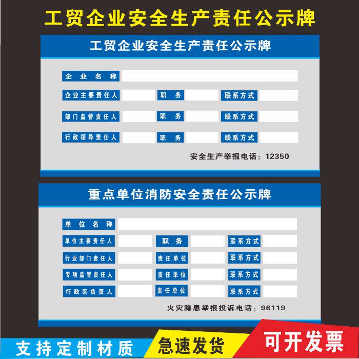 📚 工贸企业安全生产责任公示牌主要风险重点单位消防安全责任公示牌