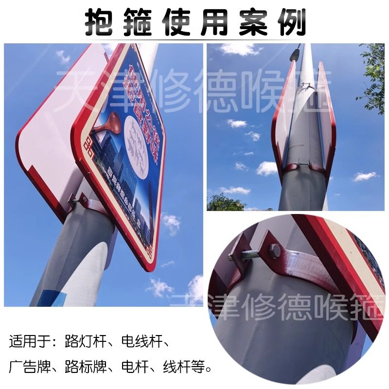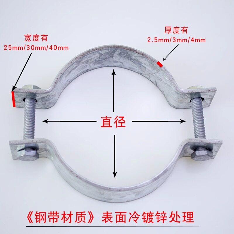 📚 扁铁钢带电线杆抱箍镀锌双面固定器水泥杆灯杆钢管柱子管卡子大号