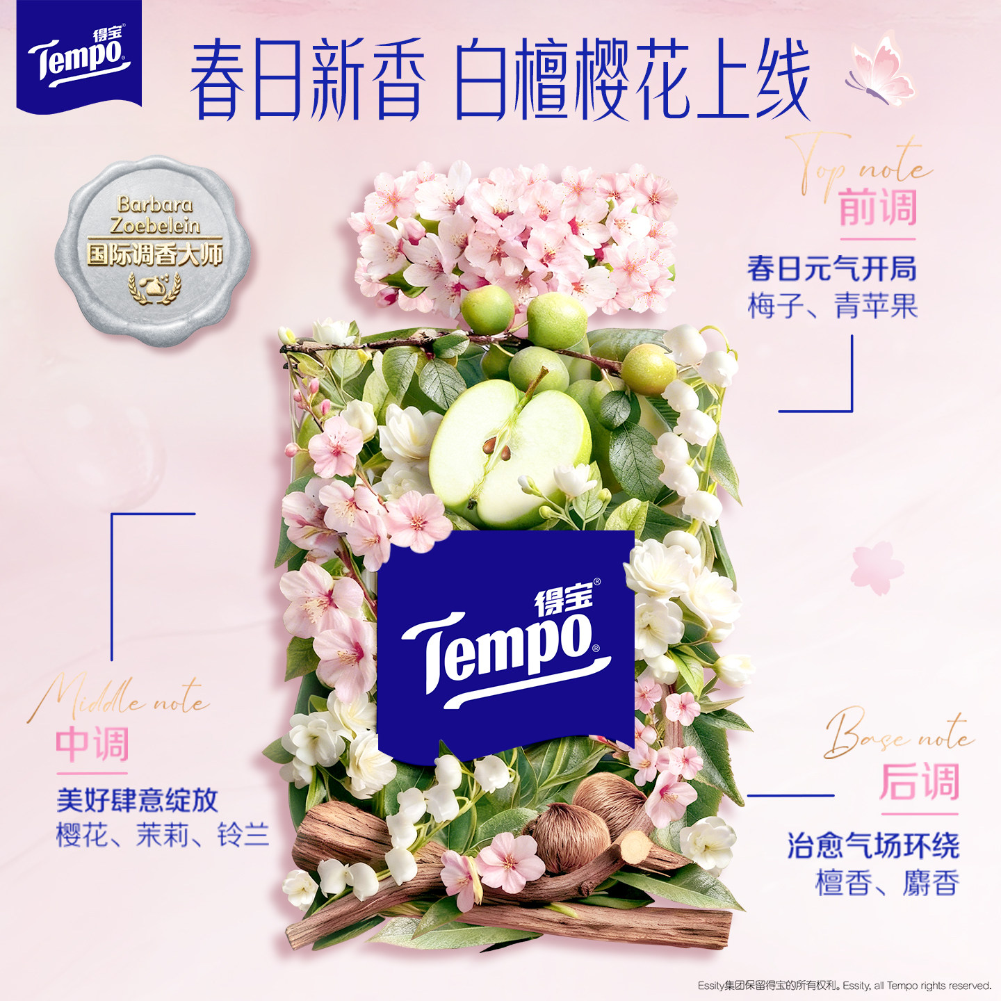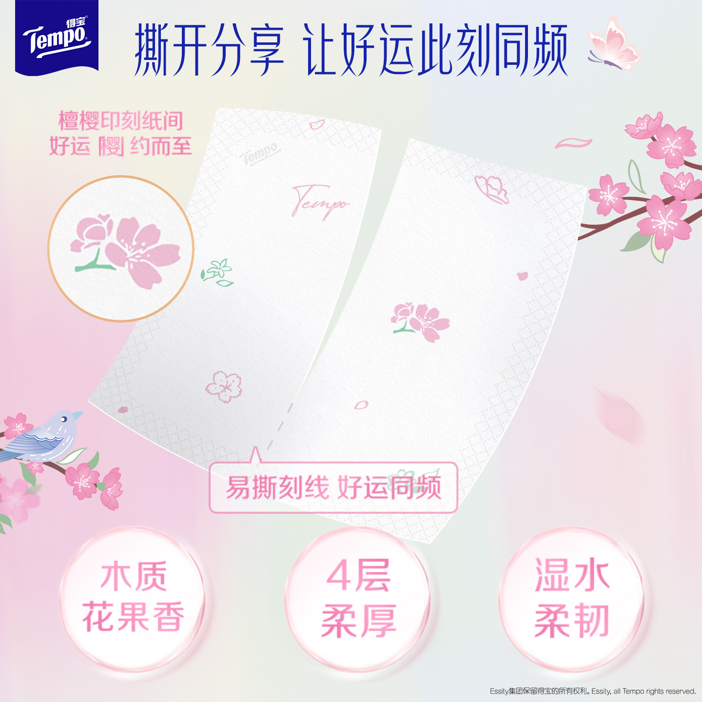 📚 Tempo得宝国际大师调香好运檀樱限定对半撕手帕纸7张12包便携装a