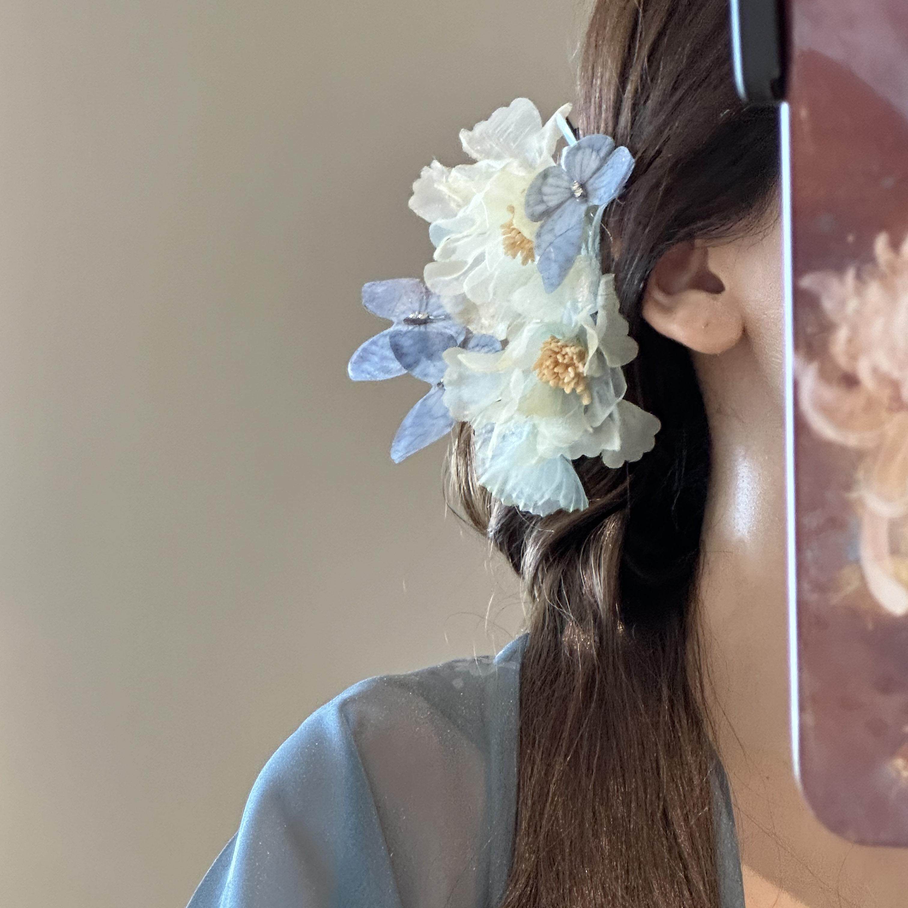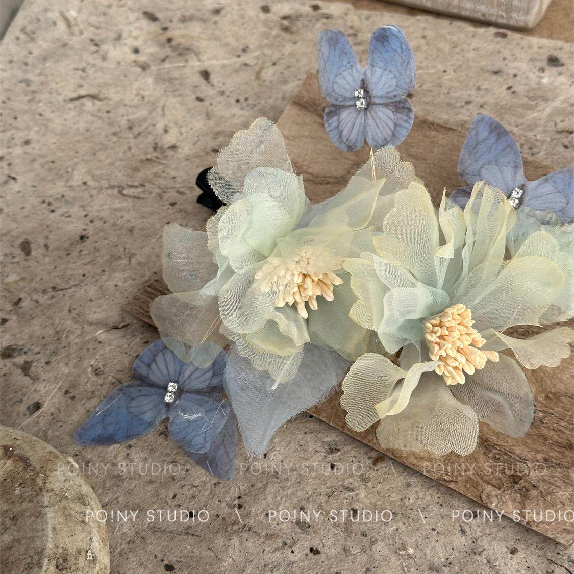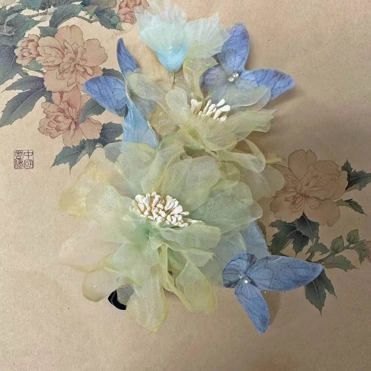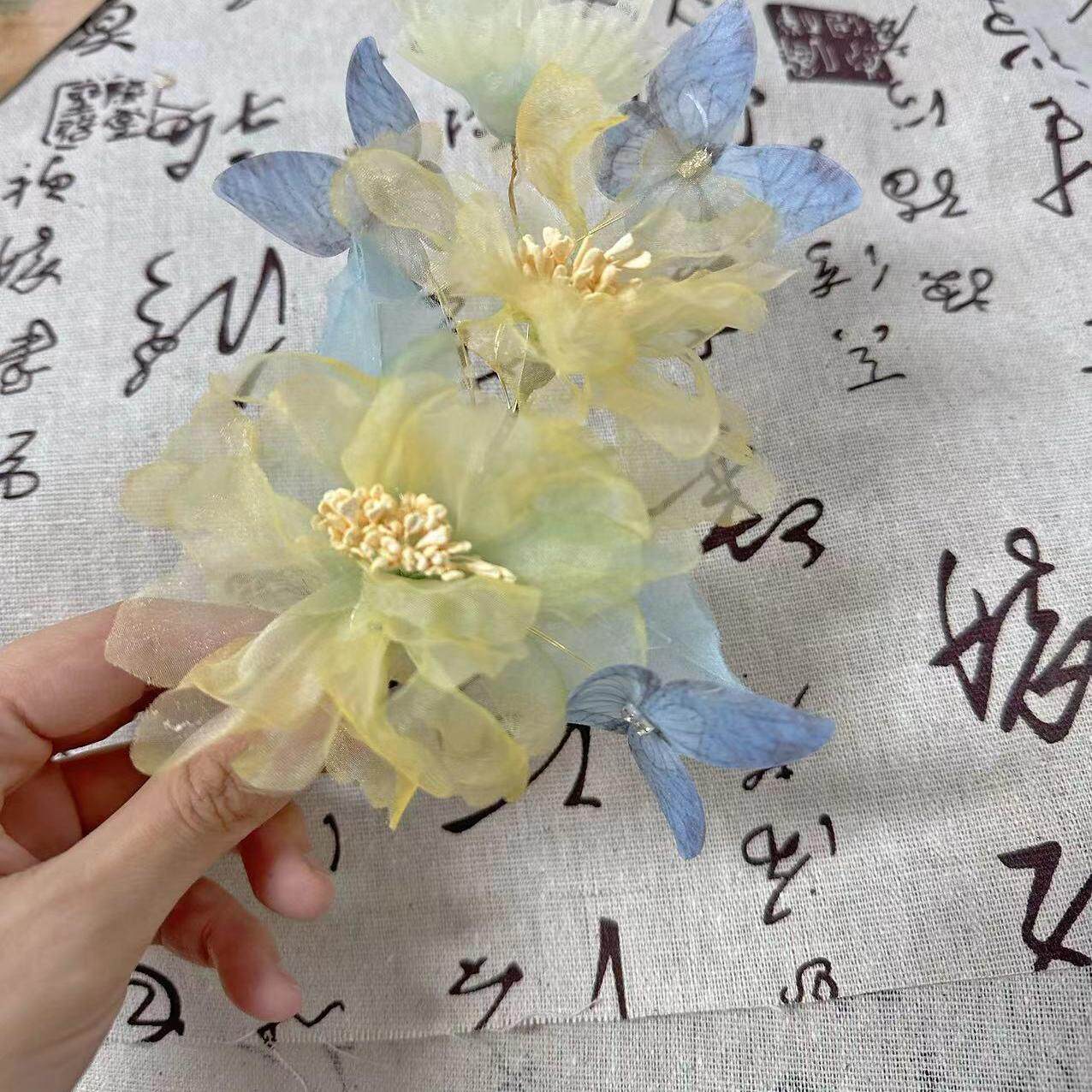 📚 微云似梦牡丹手工烫花朵发夹薄纱仙气绢花古风汉服发饰国风头饰