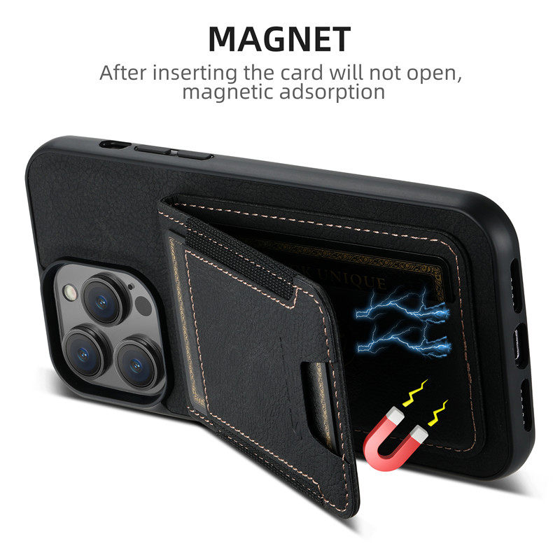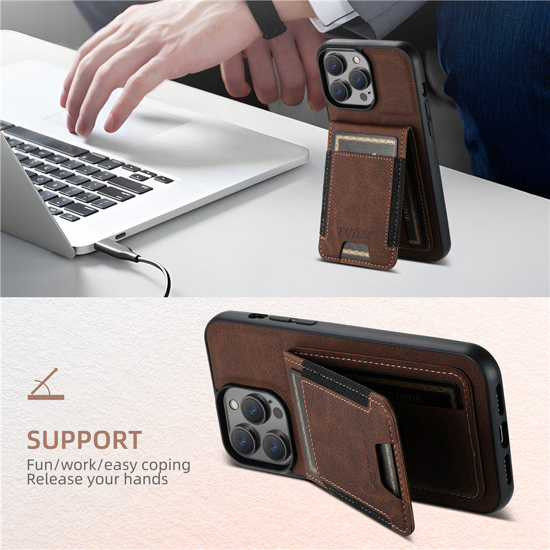 📚 适用iphone 15 promax case苹果17/16Pro手机壳支架12/13插卡14plus手機11pro包咭高档后盖皮套leather cover
