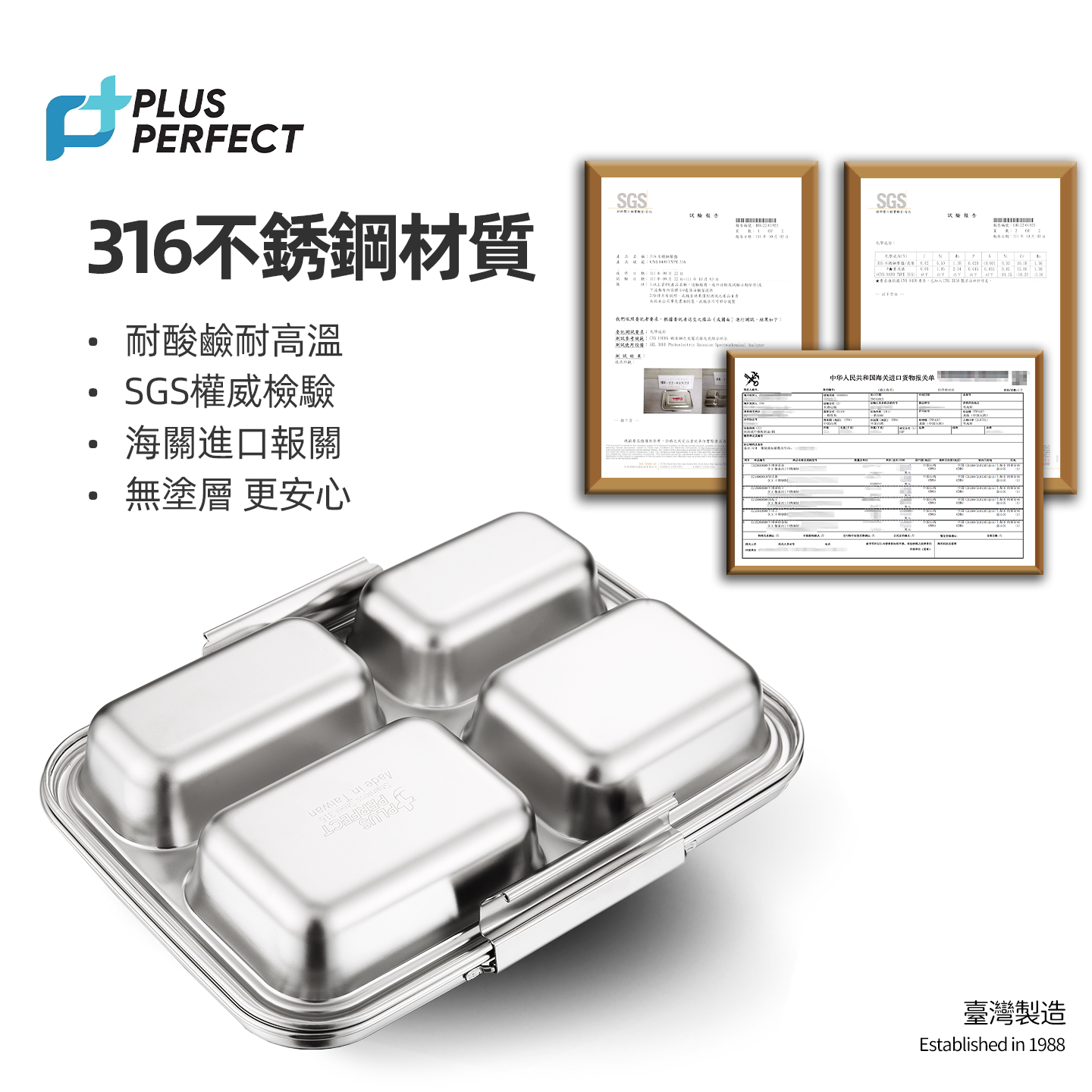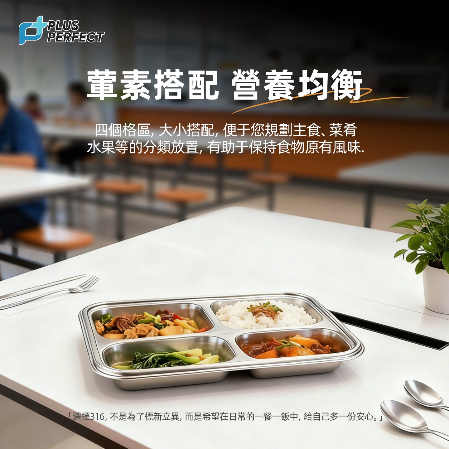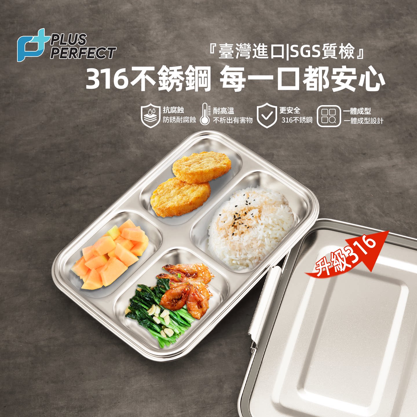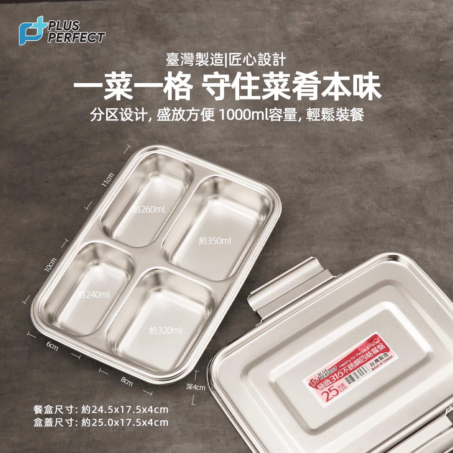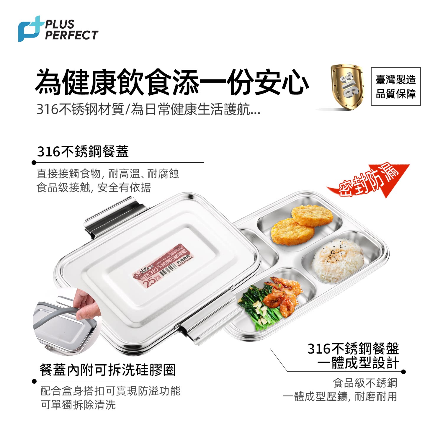 📚 PERFECT台湾316不锈钢餐盘分格饭盒儿童学生食堂打饭便当盒进口