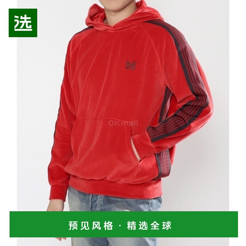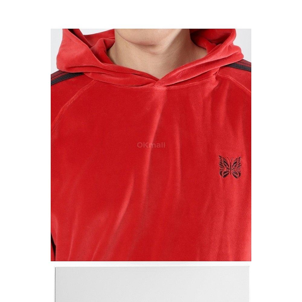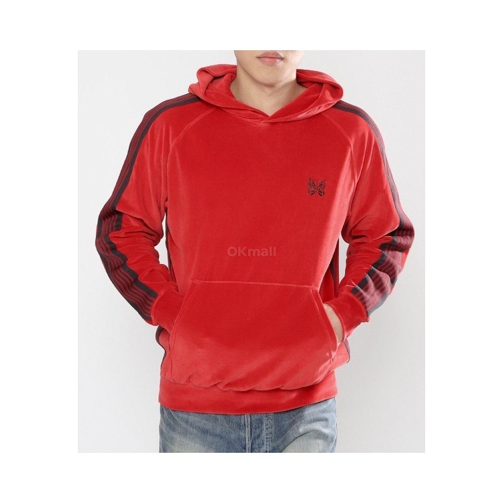 📚 韩国直邮NEEDLES C/PE 丝绒红 运动帽衫 NS252 连帽拉链衫卫衣